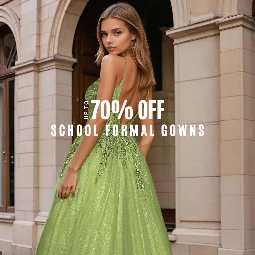 Don't miss out on Australia's most sought-after formal wear at unbeatable prices. Save up to a massive 70%. Whether you're heading to a school formal, wedding, or special event, discover the perfect dress from our exclusive designer range. For the first time ever, we're offering up to 70% off over a massive selection of our formal gown collection. Stock is limited in each style, so if you've found "the one," get in quick to secure your size.