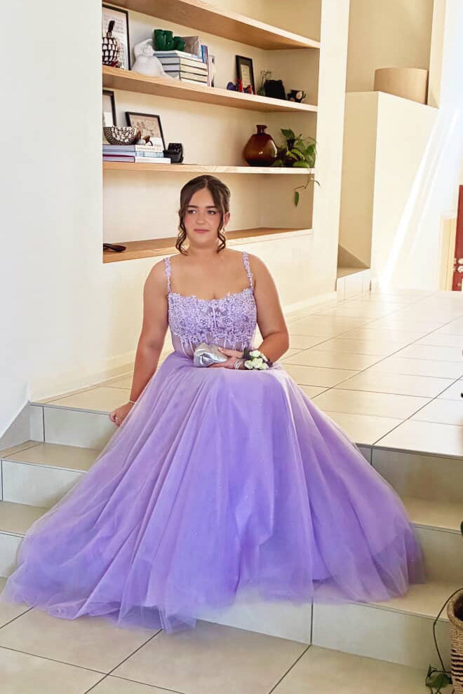 Olivia is wearing the Lilla Corset Tulle Gown - Lilac - Size 14