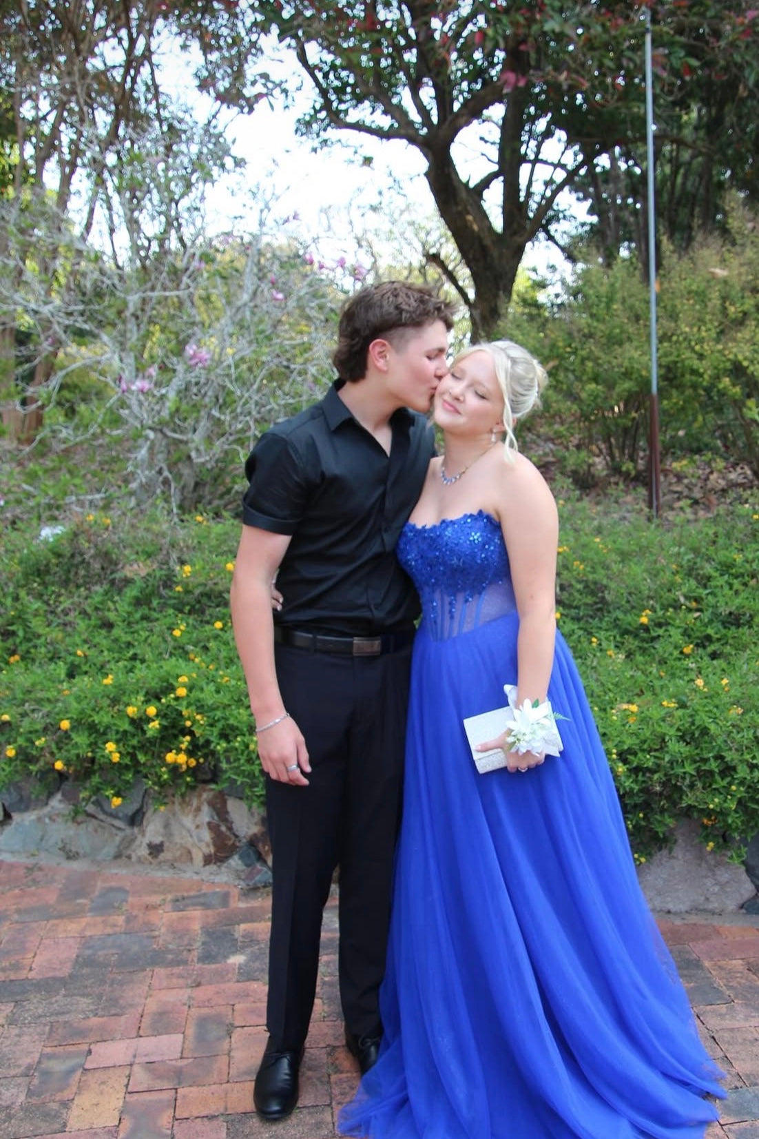 Georgia is wearing the Tayla Sequin Gown - Cobalt - Size 6