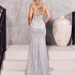 The Adaya Strapless Beaded Gown is one of the sexiest, most glamorous prom looks you'll see on the red carpet. Show off your figure and showcase your curves in a stunningly fitted silhouette perfectly accentuated with pointed bust cups and a plunging V-neckline. Your skin will shine through the sheer side cut outs with just enough sparkle to light up any room! Feel luxurious and magical on prom night draped in an enchanting fully embellished dress as you take your lead in a captivating ballroom moment. The strapless beaded fitted dress is sure make you feel absolutely breathtaking and turn heads from every angle.