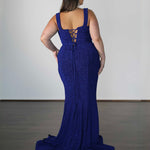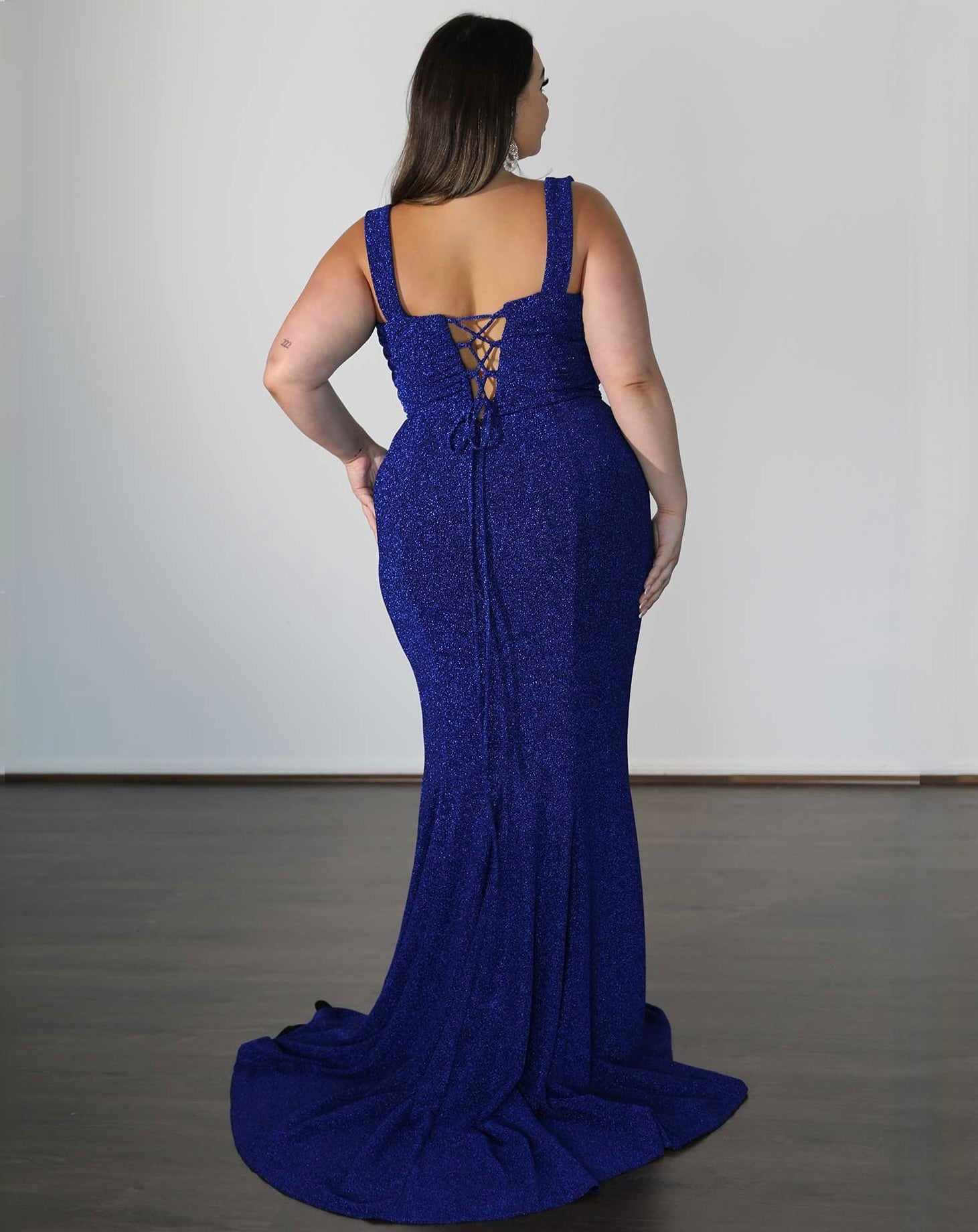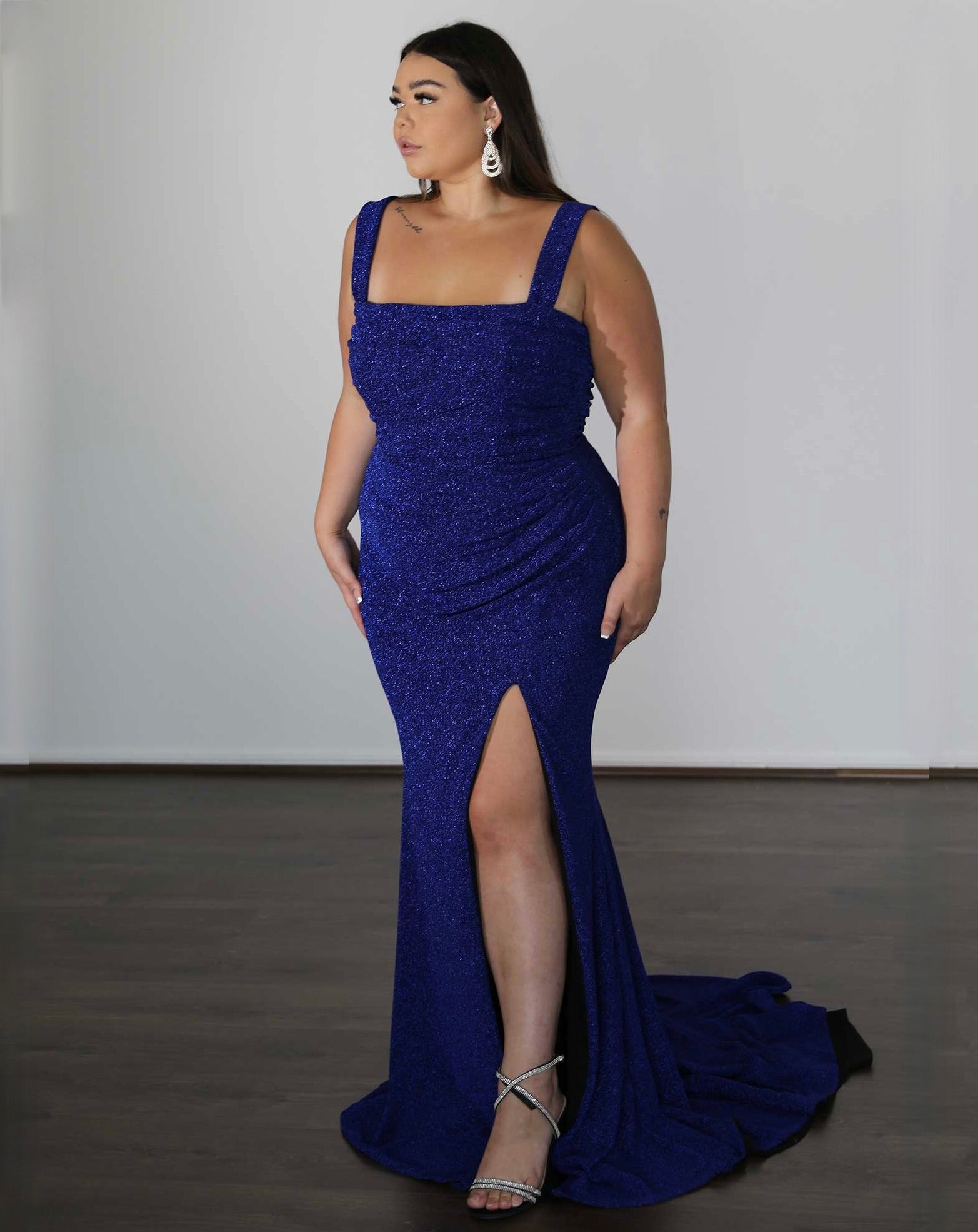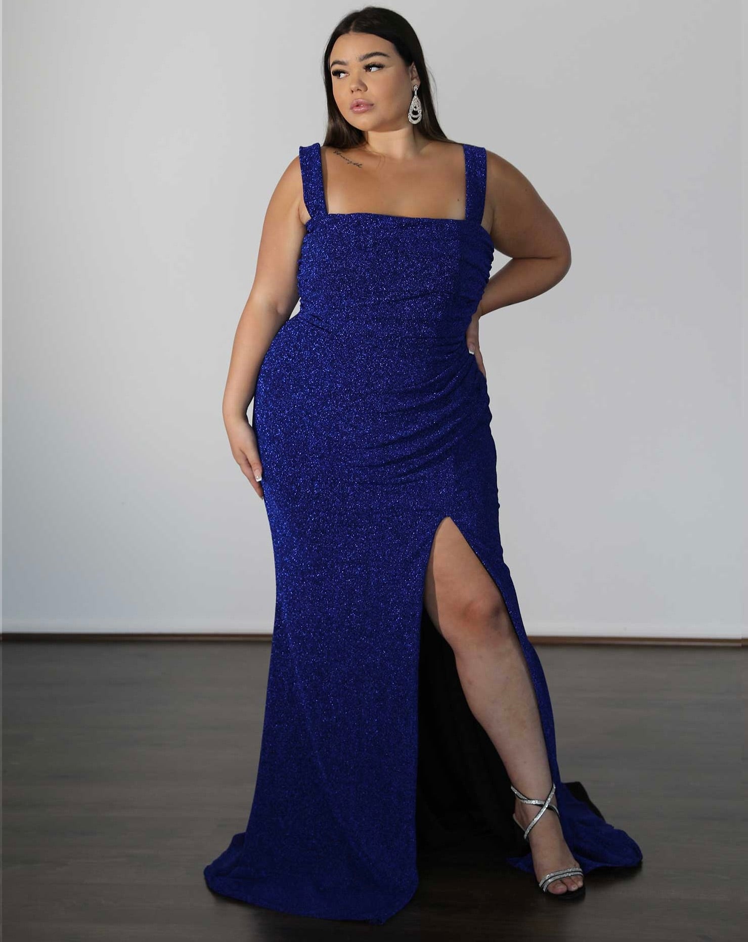 Model Ryley is wearing size 18 'Amber Sapphire Metallic Jersey'