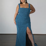 Model Ryley is wearing size 18 'Amber Sapphire Metallic Jersey'