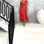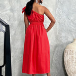 Be bold and effortlessly chic in our Angelina One Shoulder Maxi Dress! This stunning and elegant dress features a flattering one shoulder design with a beautiful bow detail and convenient pockets. The perfect combination of style and functionality, this dress will have you looking and feeling your best for any occasion.