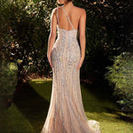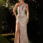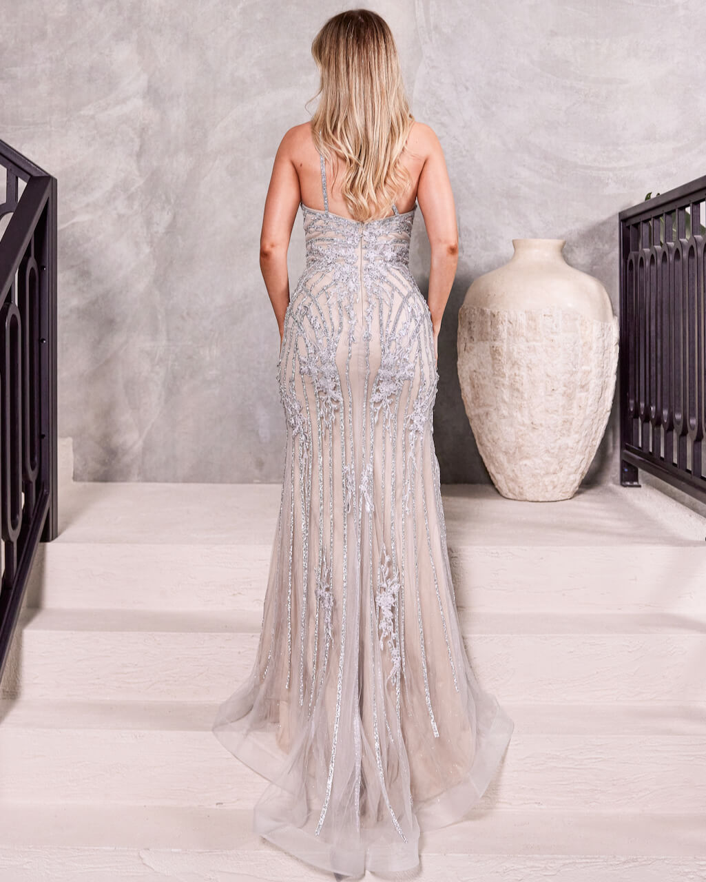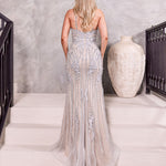 Antoinette One Shoulder Beaded Gown - Silver/Nude