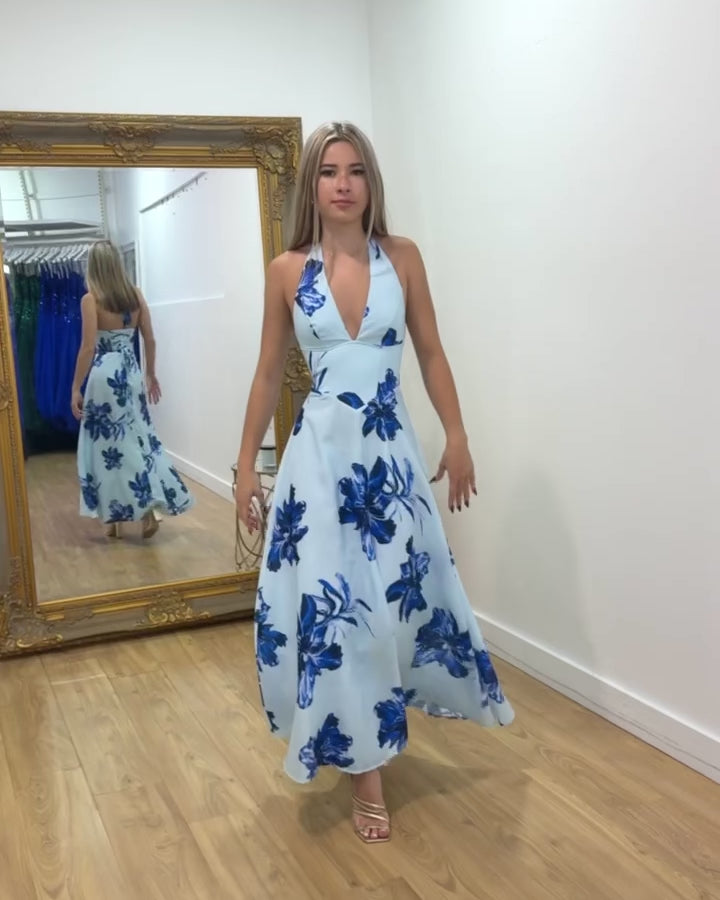 Audrey Halterneck Maxi Dress - Blue Floral