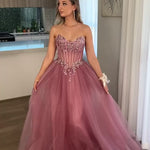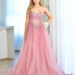 Capture the timeless elegance of the Aurora Strapless Corset Gown - Rose. This princess gown features a corset strapless top, delicately embroidered details, and a full tulle skirt that will make you look like royalty. Make your special day extra memorable wearing this luxurious and timeless piece that will be cherished for years to come.