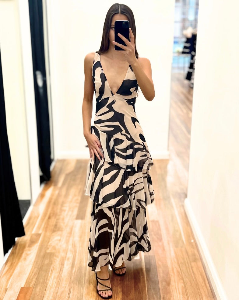 Bella Layered Chiffon Maxi Dress - Black/Nude