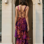Indulge your sense of style in our exquisite Bella Layered Chiffon Maxi Dress. Crafted from luxuriously soft chiffon, this dress features a deep neckline, a lace-up back, and a layered skirt that flows gracefully to maxi-length. Perfect for a special occasion, this dress is sure to make a statement.