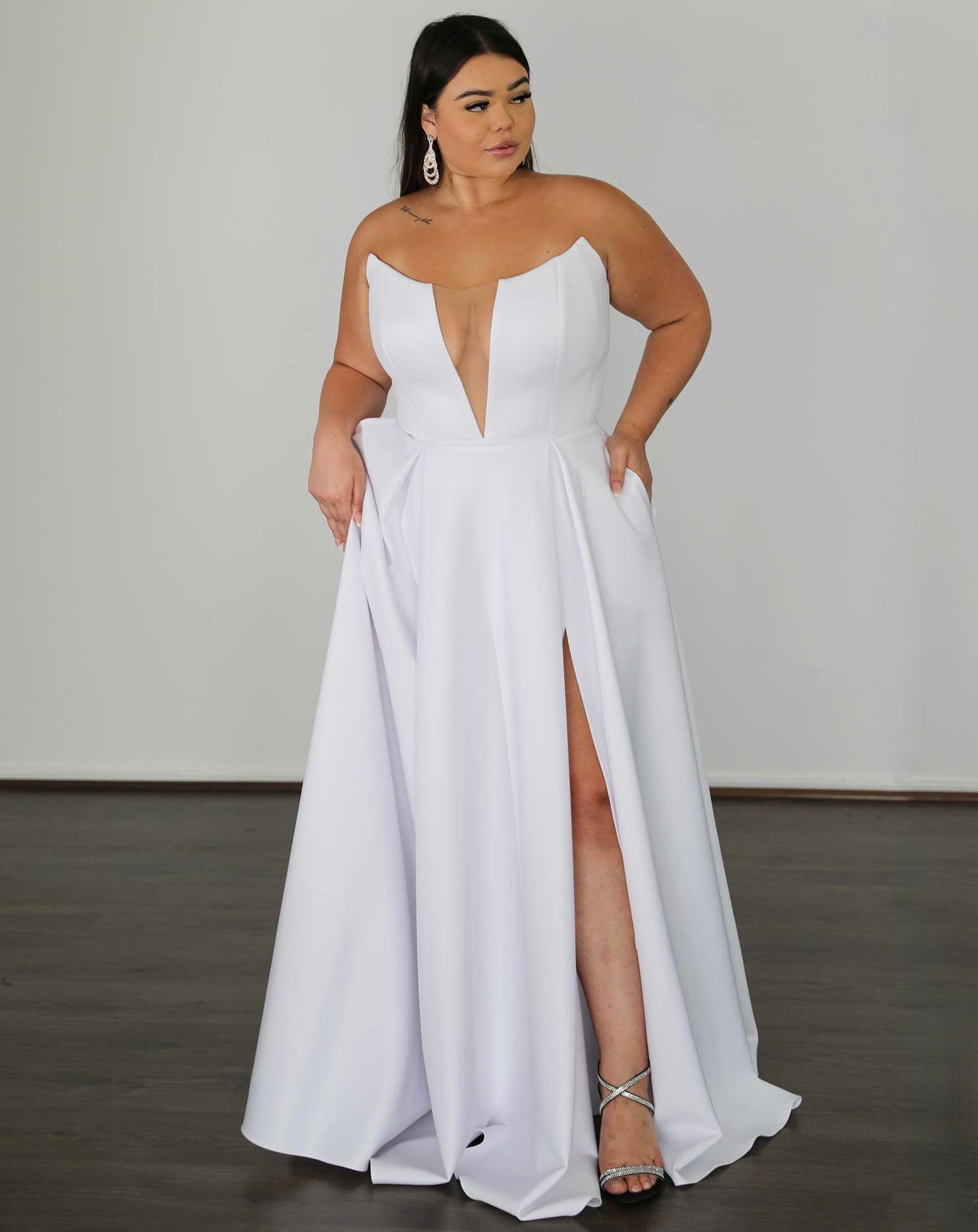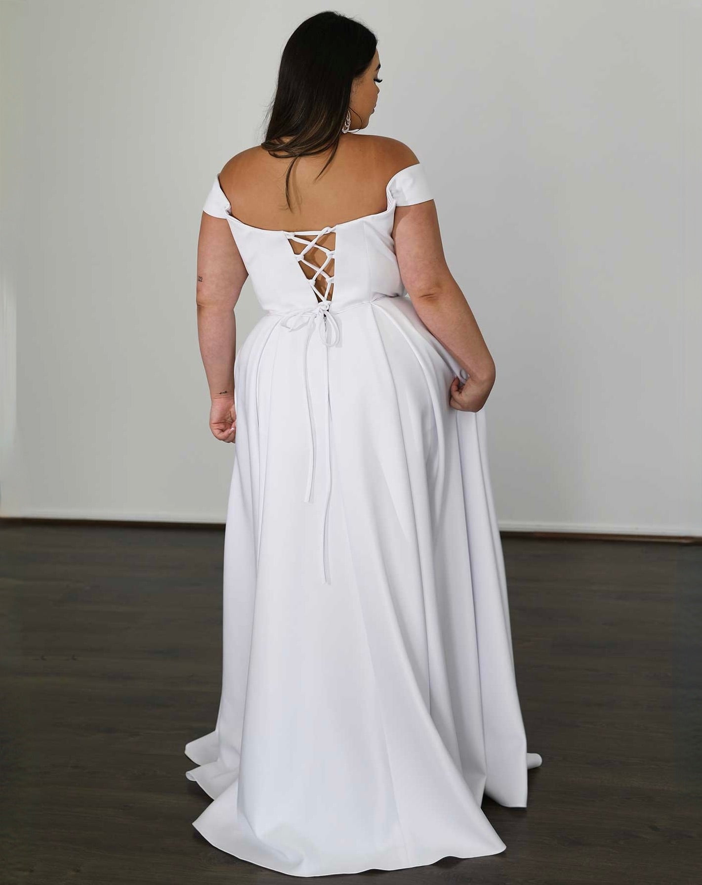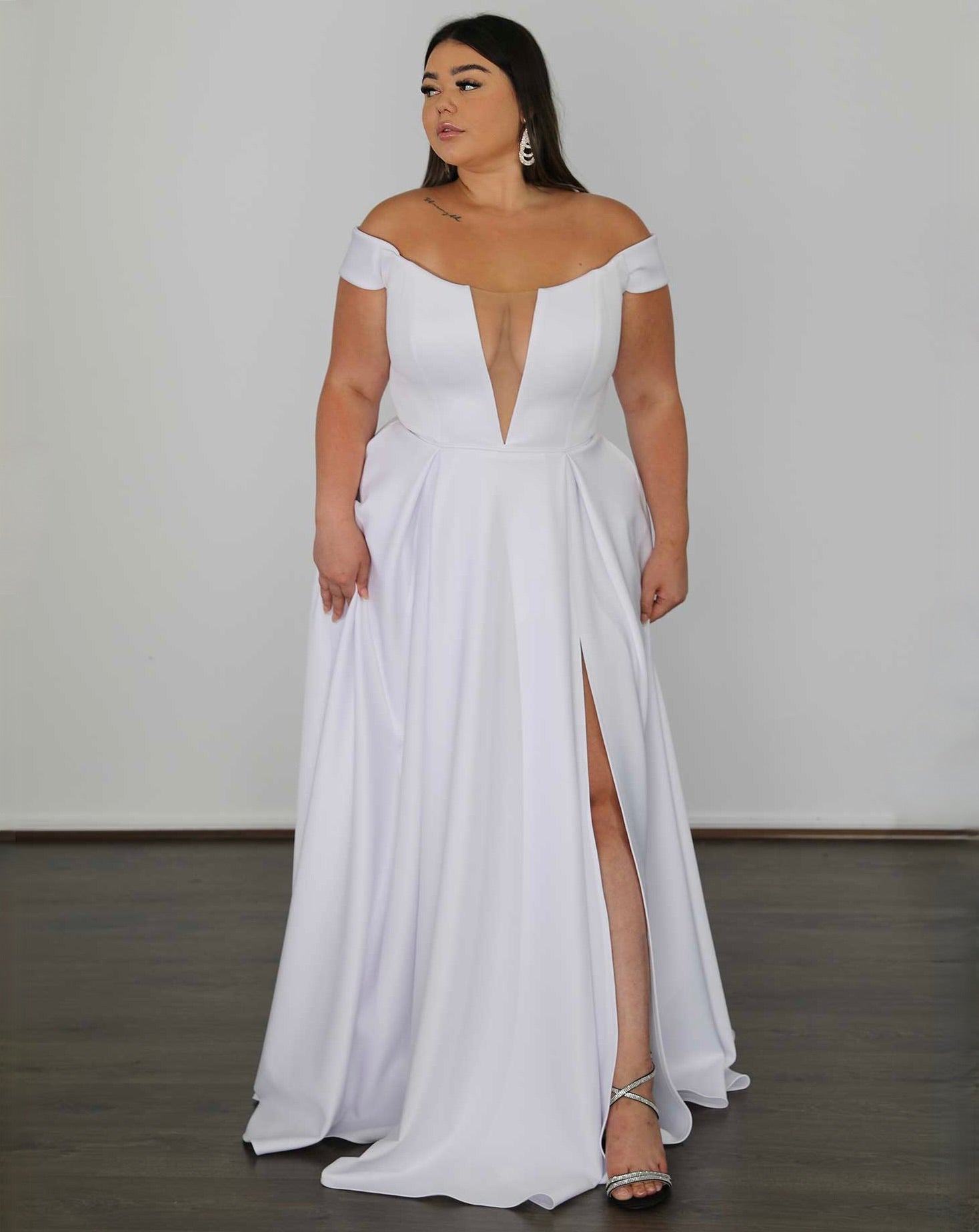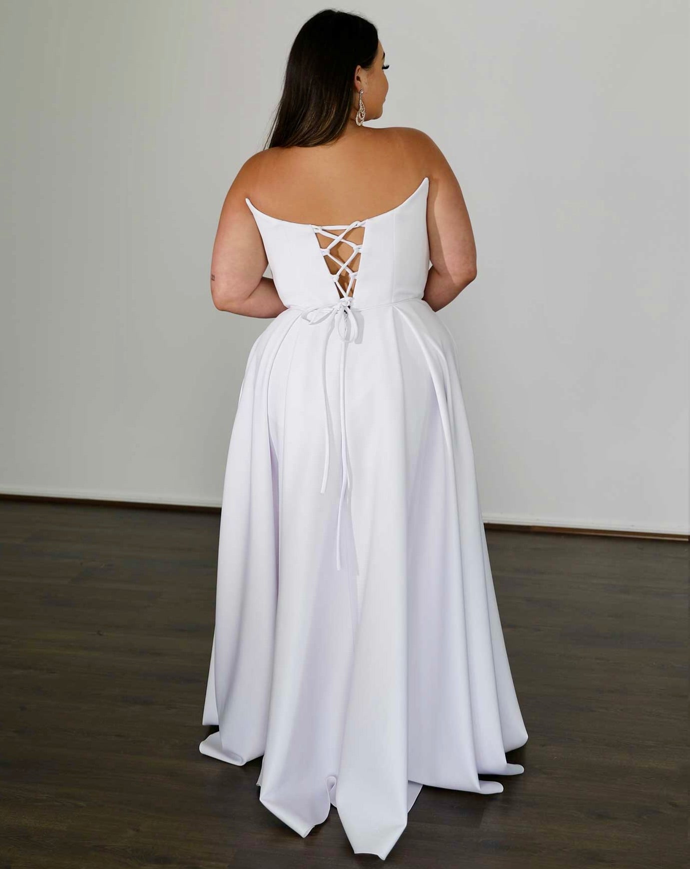 Model Ryley is wearing size 18 'Belle White Scuba