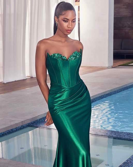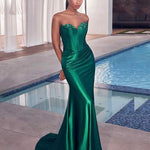 Look like a sultry goddess in this elegant, fitted Blair Strapless Corset Gown. Featuring a boned corset bodice to cinch your waist and enhance your curves, this glamorous gown will have heads turning and hearts racing. The gathered hip area and side leg slit make for an incredibly sexy silhouette, perfect for a special night out. A beautiful addition is the lace-embellished bust cup detail for a refined glam style that will have you oozing sophistication and confidence. Show off your best assets in this stunning, figure-hugging gown and guarantee you will be the star of the show. Be glamorous, be sexy, be timeless with this strapless fitted satin gown.