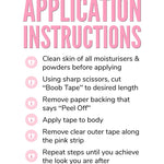 • Hypoallergenic & skin safe • Easy to use & remove • Waterproof for ultimate comfort & confidence • Lift, flatten, reduce movement, boost, or create cleavage with Boob Tape!