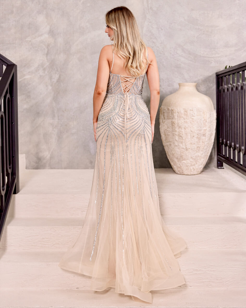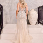Clementine Beaded Fringe Gown - Silver/Nude