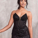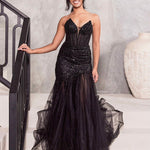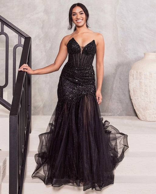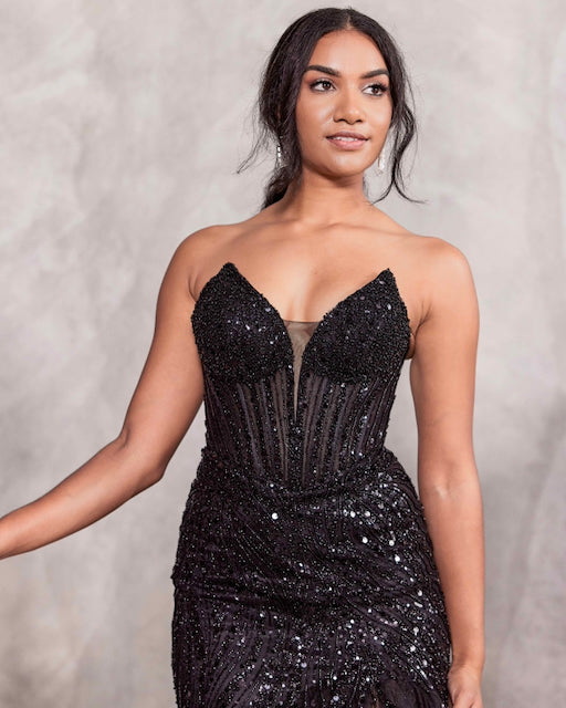 Elevate your special occasion style with this Daisy Beaded Strapless Gown! Crafted from quality fabrics, this sleek silhouette is perfect for any prom, birthday bash, or other romantic event. Featuring a pointed bust cups with a tasteful strapless v-neckline to flatter your figure and an eye-catching sequin embellished bodice for a touch of sparkle. The tulle flared mermaid skirt adds an extra layer of drama, while the corset boned bodice ensures you look sleek and sexy all night long. For a look that will have everyone in awe, show off your curves in this elegant strapless sequin mermaid dress.
