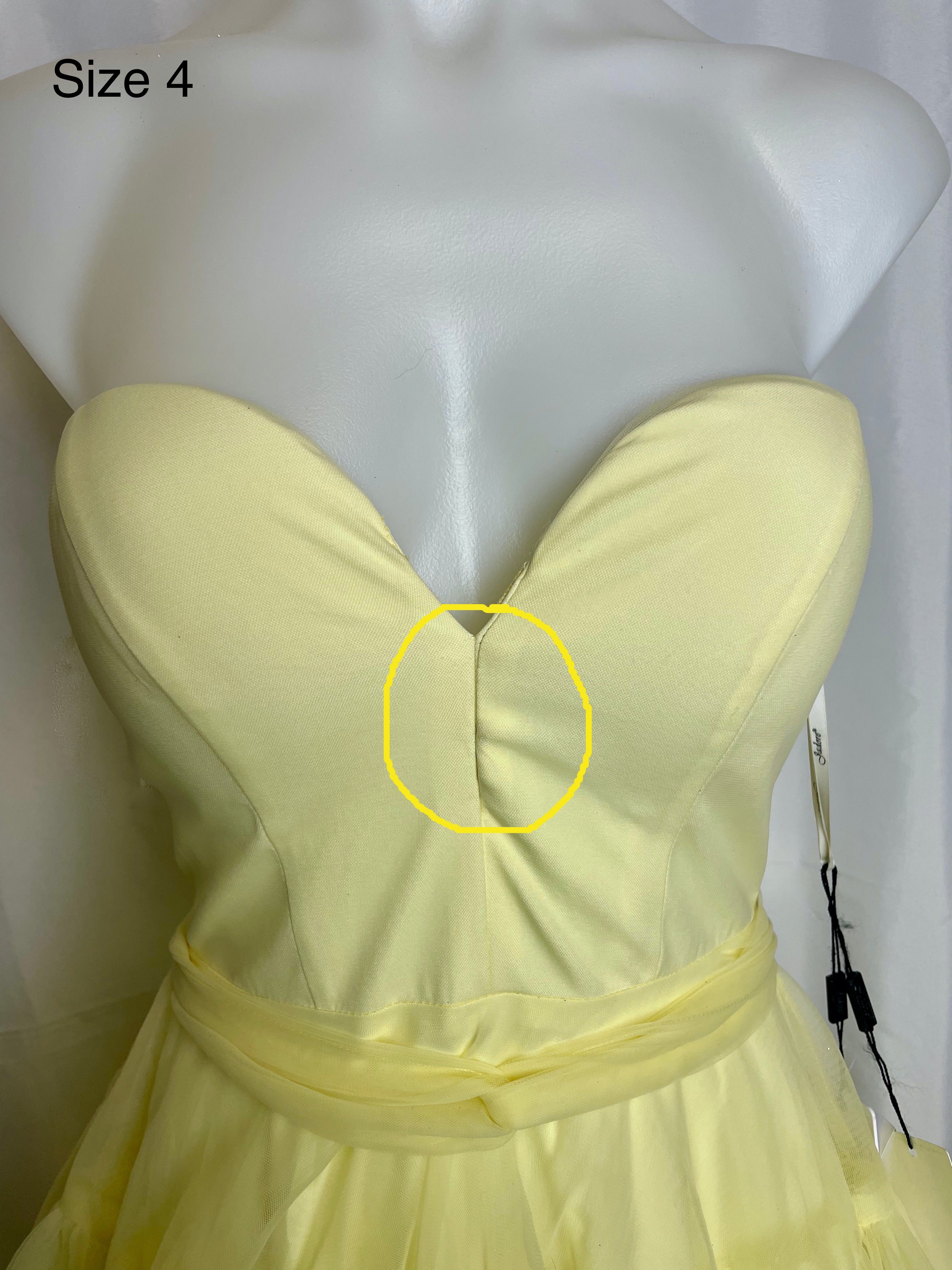 These gowns are sample gowns that have varying levels of faults and are priced accordingly. Please refer to the photos displaying the faults as per the sizes. These are clearance gowns and there is strictly no returns or exchanges. SALE IS FINAL.