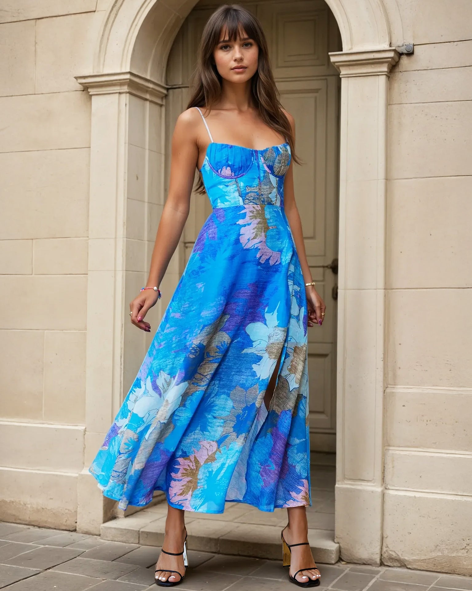 Elara Floral Midi Dress - Blue Print
