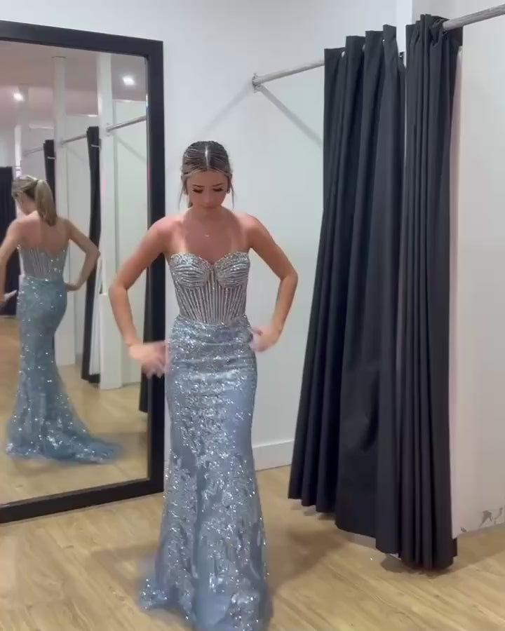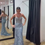 Eudora Beaded Corset Gown - Dusty Blue