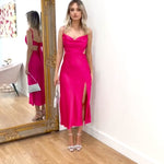 The Gaia Satin Midi Dress is the perfect dress for so many occasions! The silky satin fabric skims your body for ultra comfort and ease.