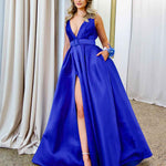 Harper Wrap Belt Gown - Royal Blue