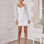 Fun and feminine, our Harriette Mini Dress is a head turning party style. Features elasticised sheer sleeves with tie-up cuff detail, ruched detailing through the body and concealed zip closure at back. The perfect mini dress for your birthday or date night paired with your favourite heels.