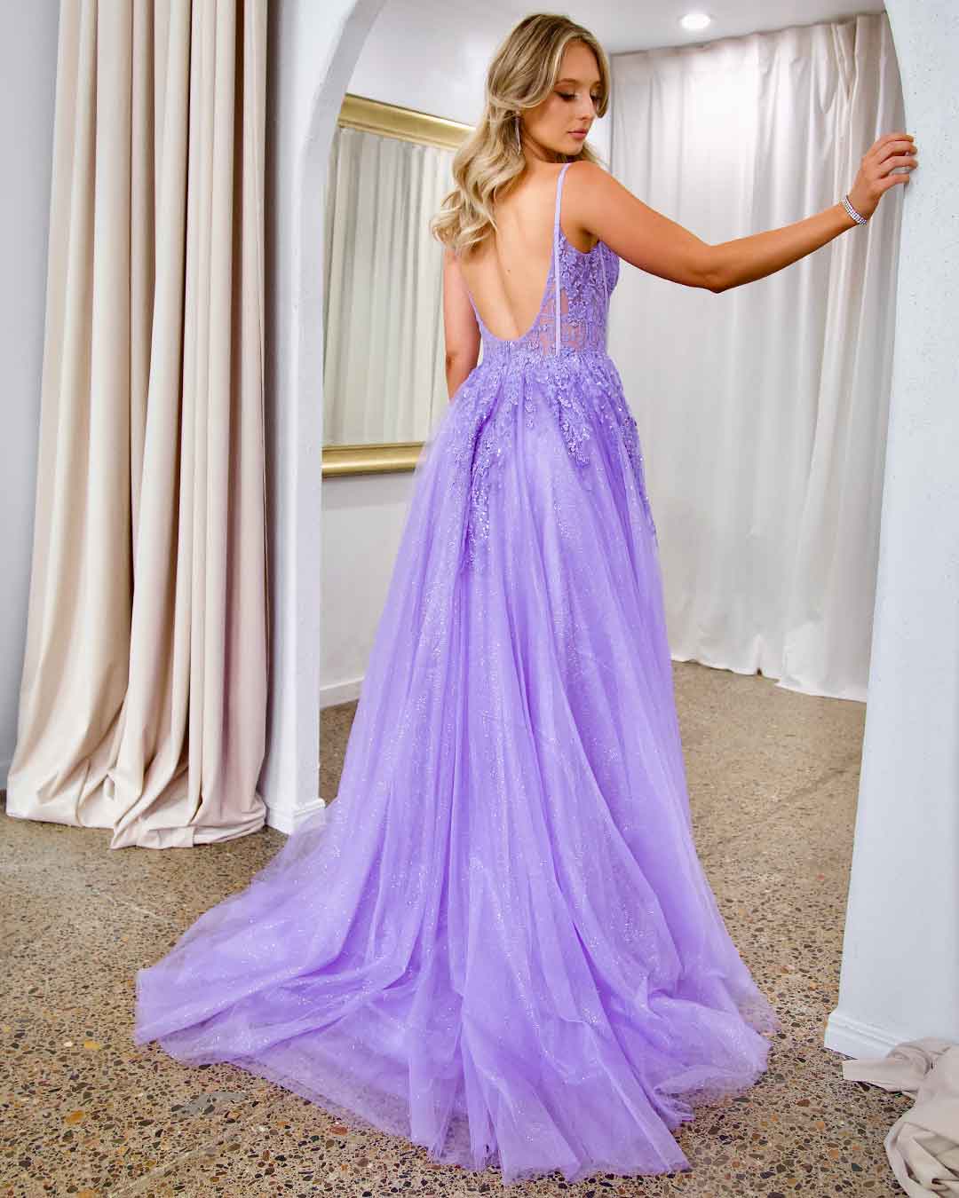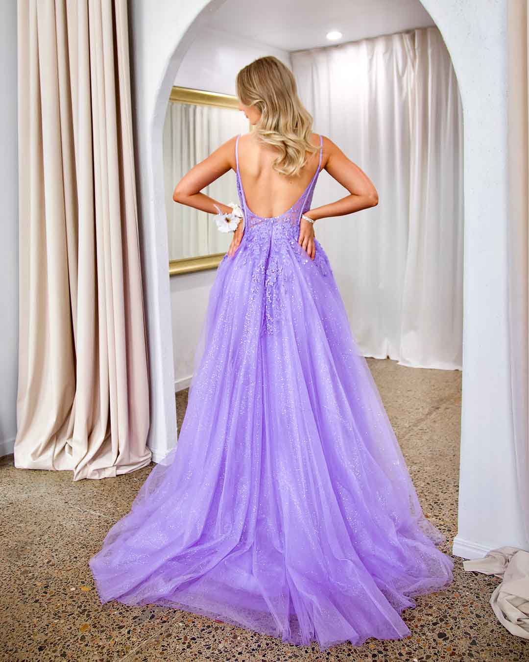 Iris Corset Sequin Tulle Gown - Lilac