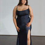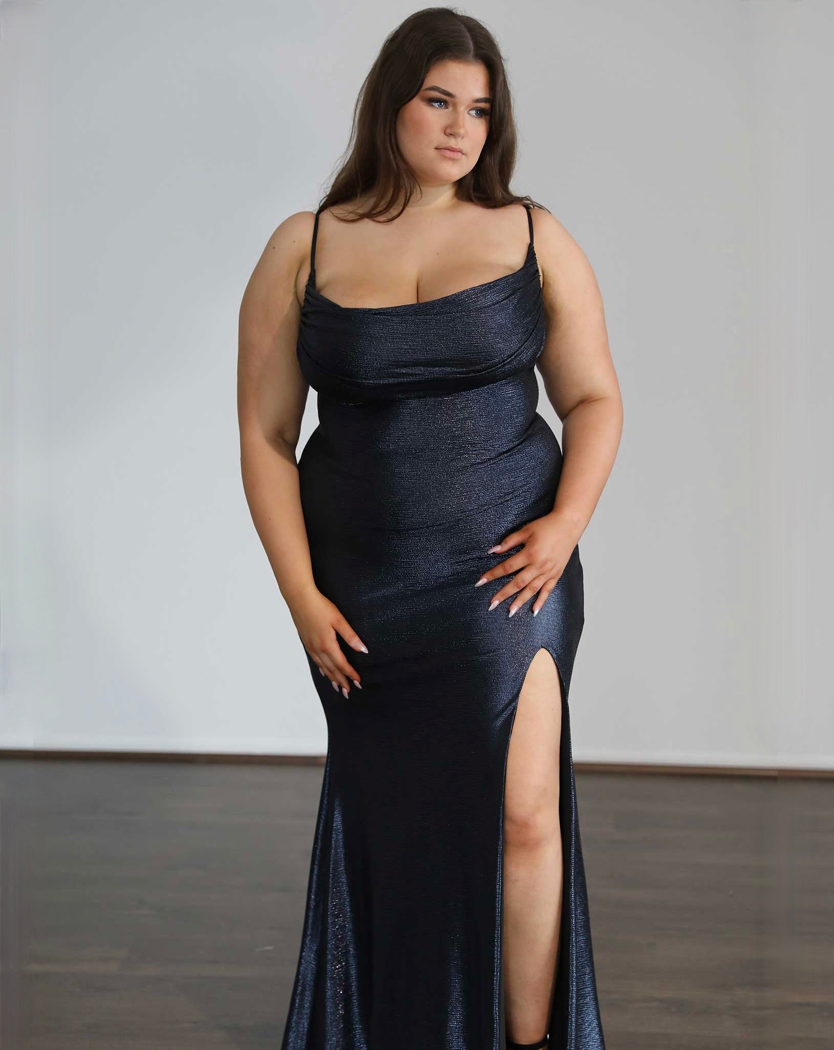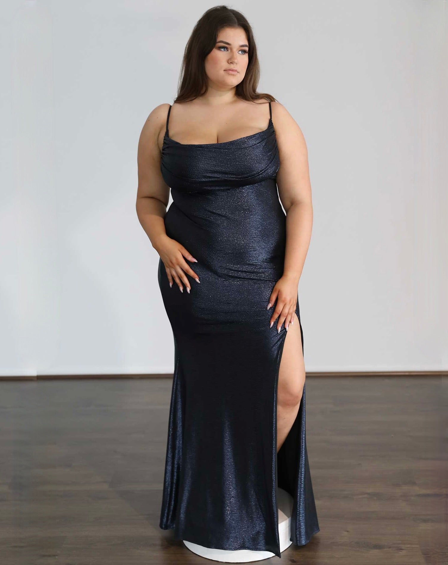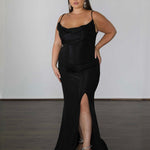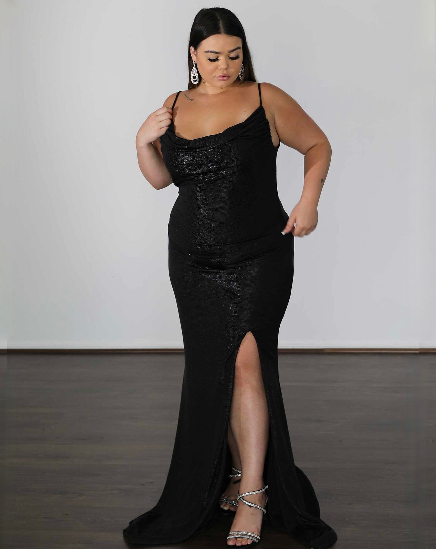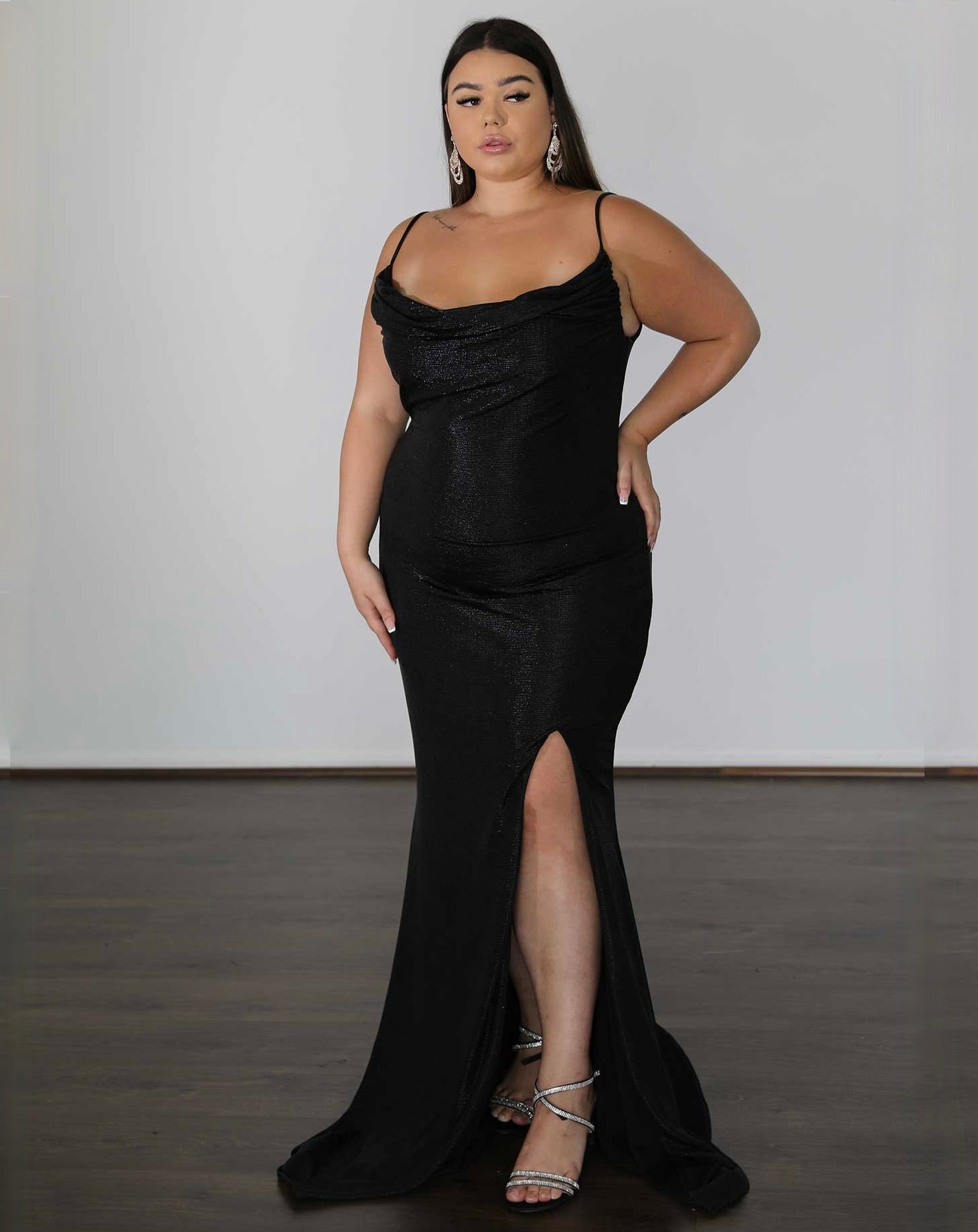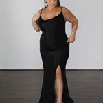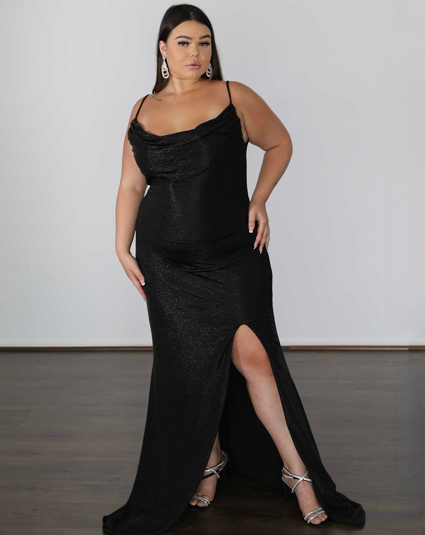 Accessorise your undeniable confidences with our ‘Issy’ Stretch Shimmer Dress. An effortless cowl style completed with full bust support and thigh high split.