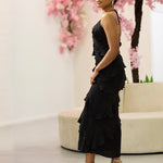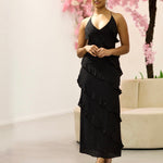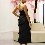 Bring luxurious sophistication to your wardrobe with the Jolene Ruffle Maxi Dress. Crafted from beautiful light weight fabric, this maxi dress features fluttering ruffles that elegantly cascade down the skirt. The halter neckline adds a touch of femininity to create a timeless look. Be the envy of any event!