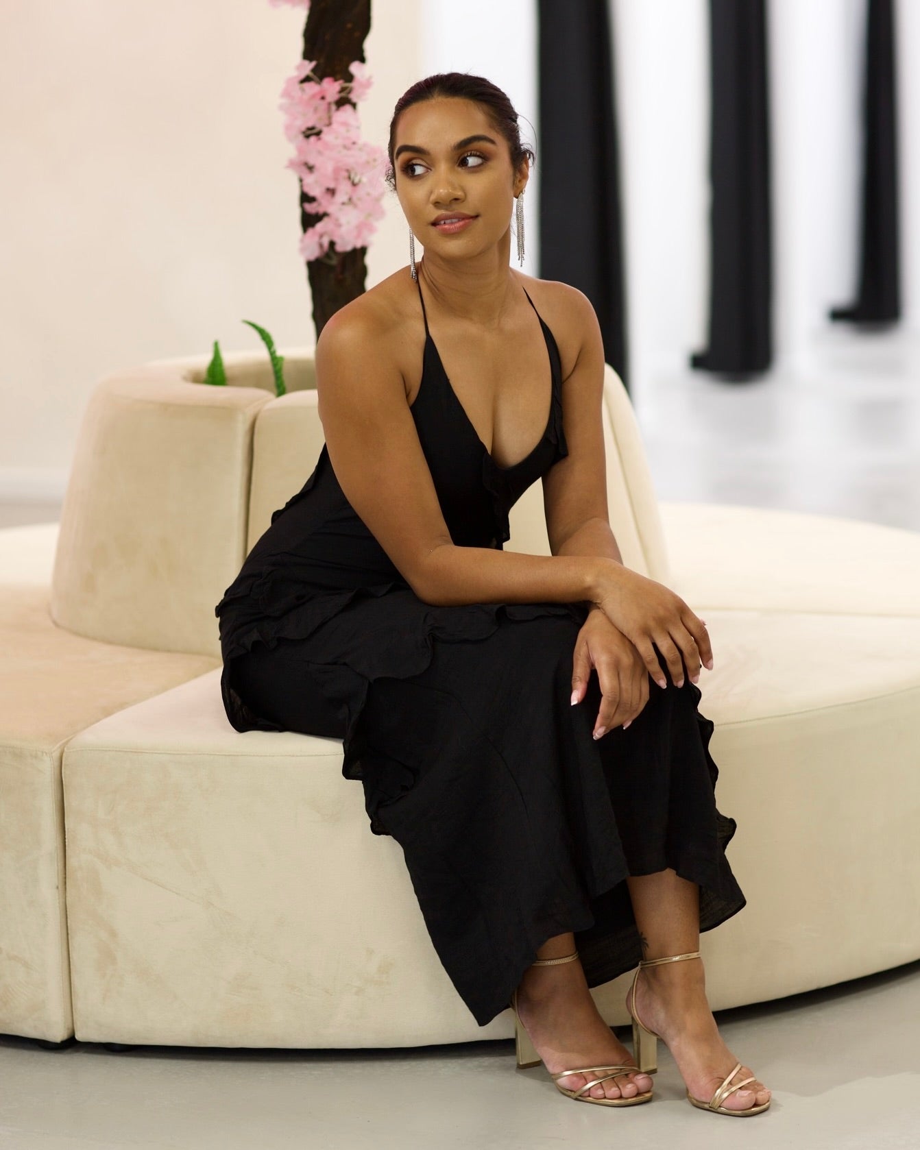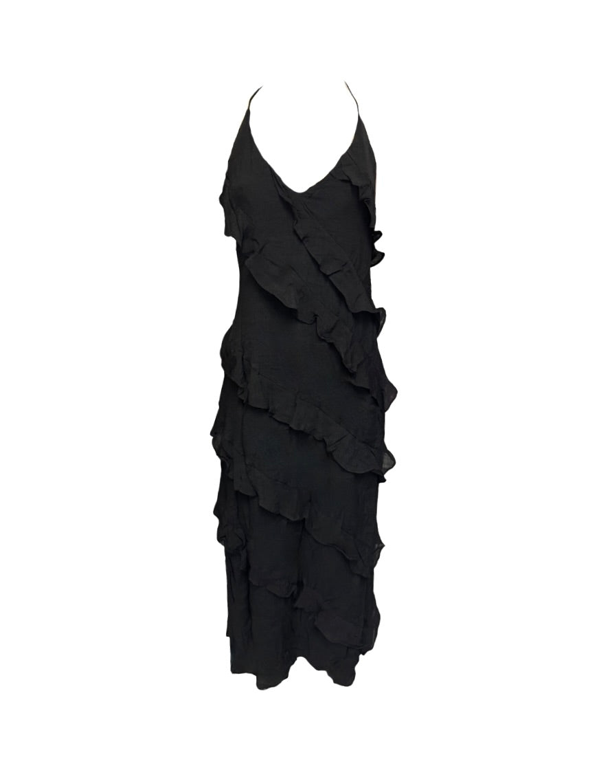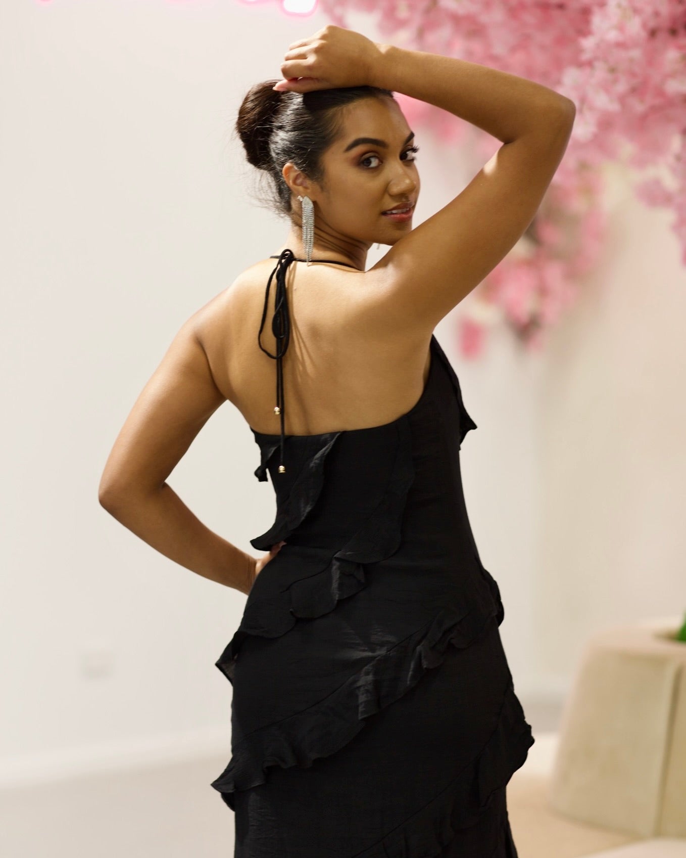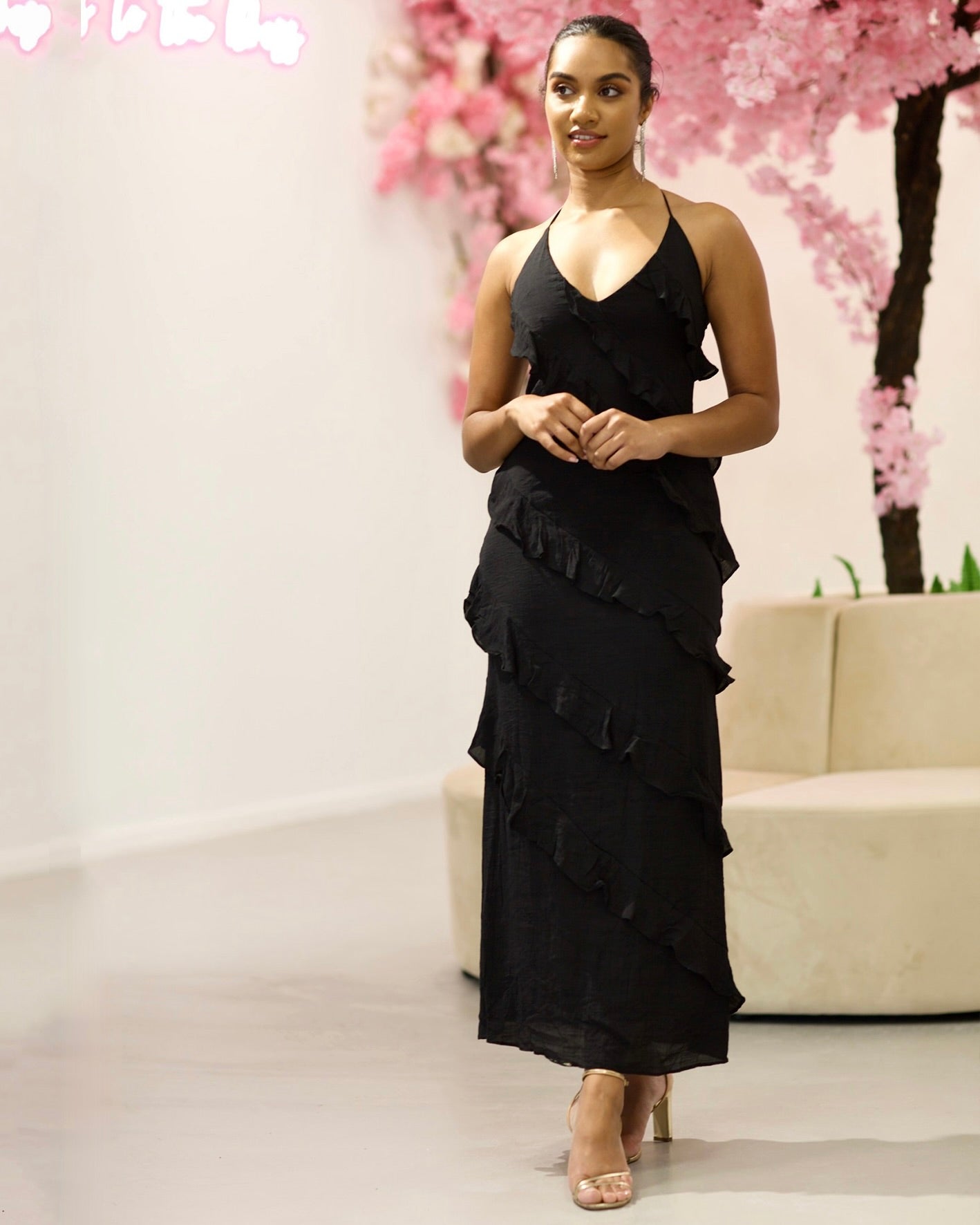 Bring luxurious sophistication to your wardrobe with the Jolene Ruffle Maxi Dress. Crafted from beautiful light weight fabric, this maxi dress features fluttering ruffles that elegantly cascade down the skirt. The halter neckline adds a touch of femininity to create a timeless look. Be the envy of any event!