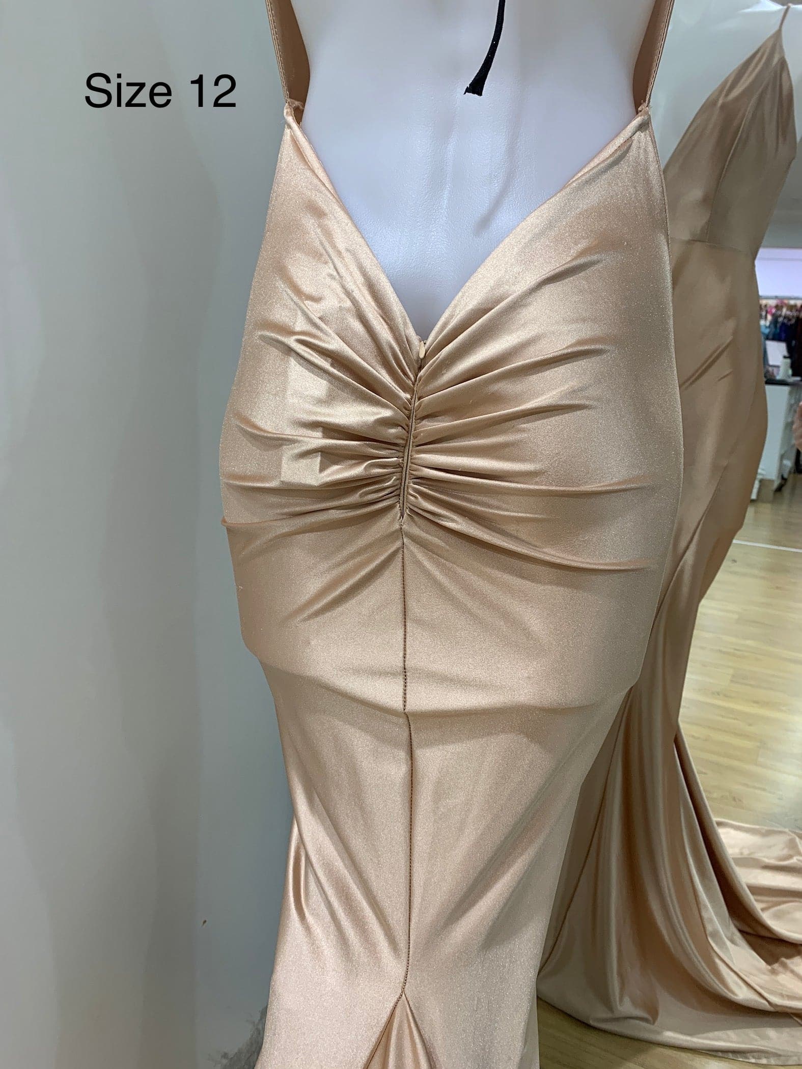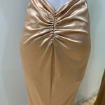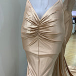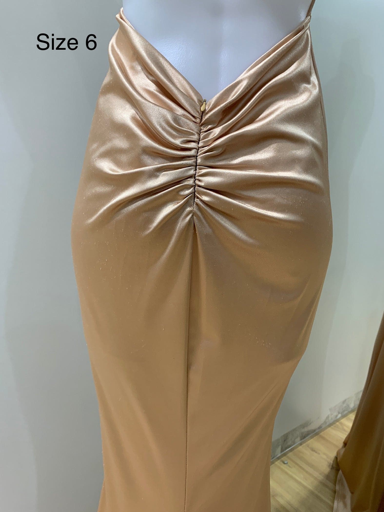 Who ever said that a simple cut means a simple gown has never seen the Kendall Formal Gown. Her perfectly figure hugging mermaid silhouette is accented with ruching detail at the back, thin straps and a delicate train. The perfect amount of shine too!