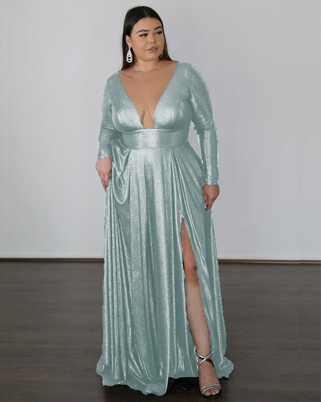Kylie Stretch Shimmer Gown - Sea Foam