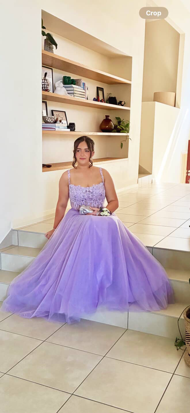 The Lilla Corset Tulle Gown dress blends romance and sophistication with its high scooped neckline and satin boned corset for structure and elegance. The bodice features intricate beaded lace appliqué and detachable lace beaded straps for versatile styling. The full gathered tulle skirt with glitter underlay creates a captivating look, while inner bra cups and a back zipper provide comfort and support. Perfect for any special occasion, the Gigi dress merges timeless beauty with modern flair.