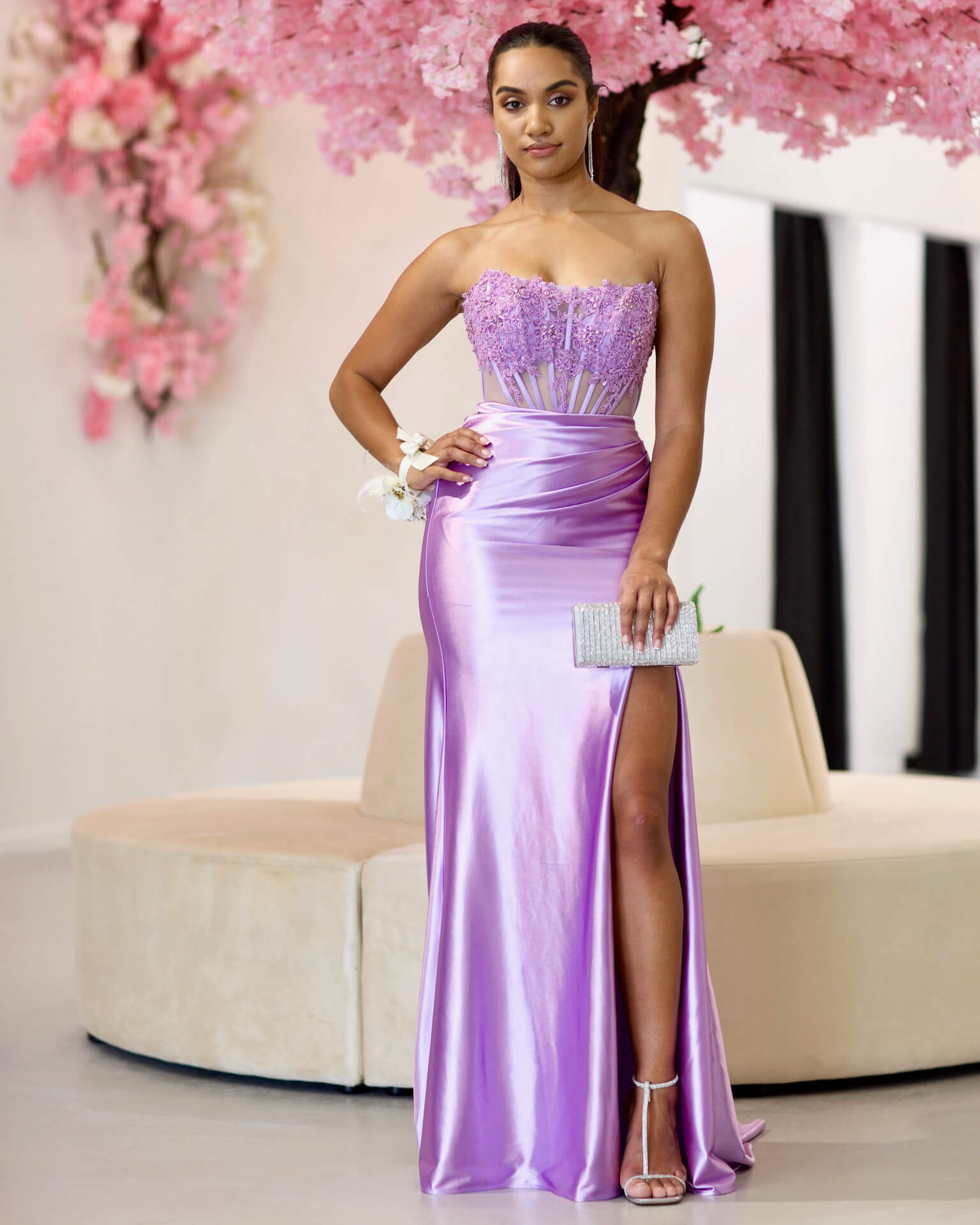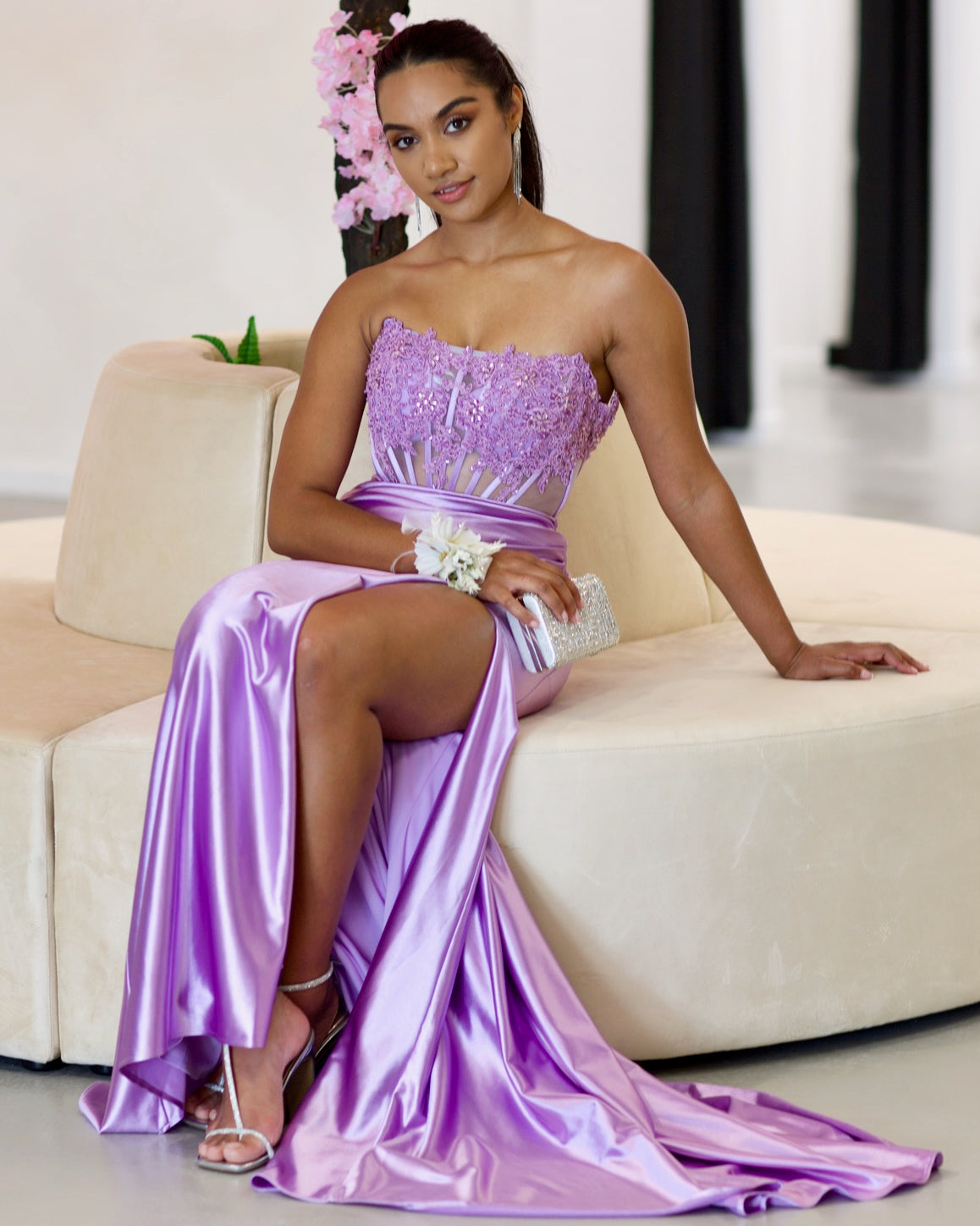 Madeline Corset Satin Gown - Lilac