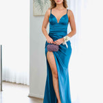 The new beautiful Marie Satin Gown by Nicoletta features thin straps, V-Neckline and a super sexy side split. Made in Nicoletta's Luxury satin, this dress is soft, silky and comfortable.