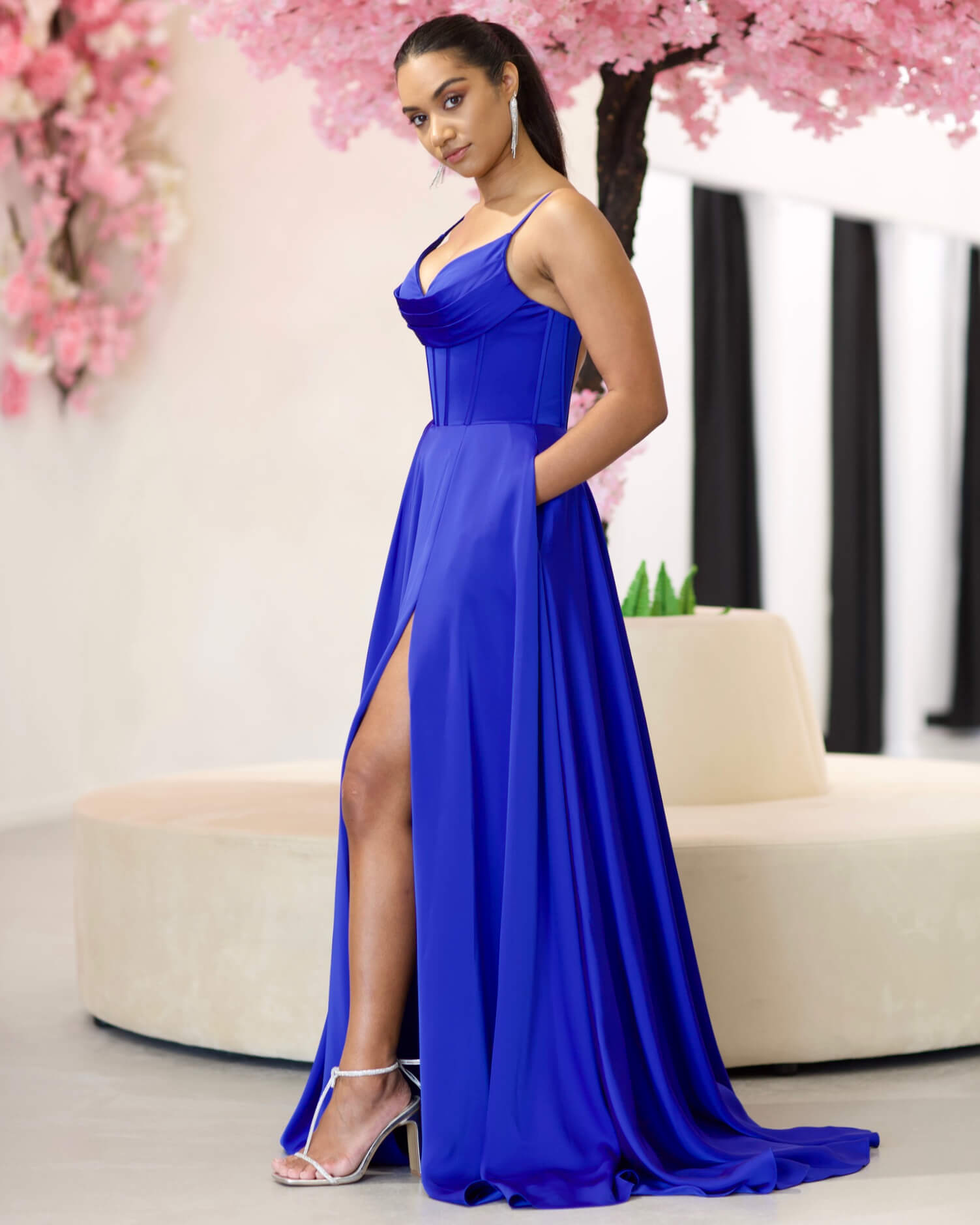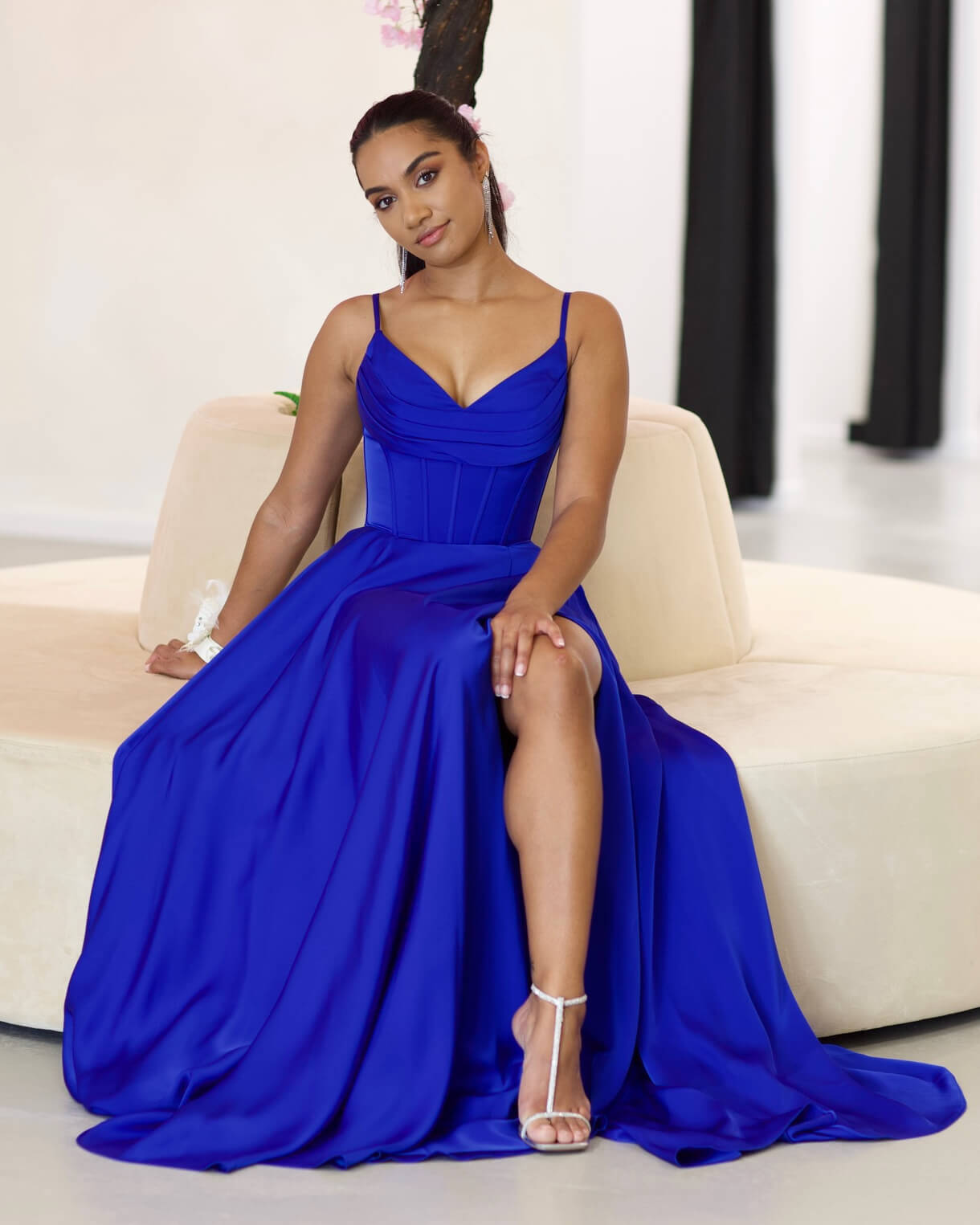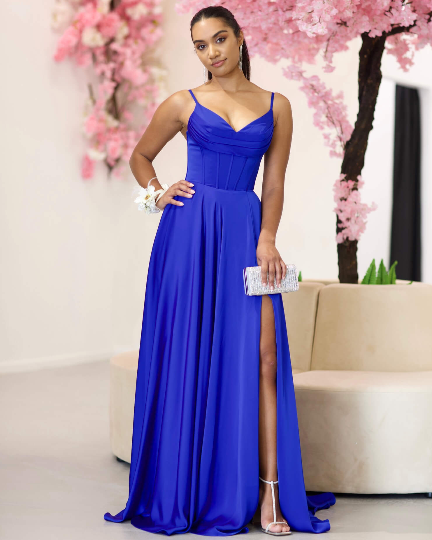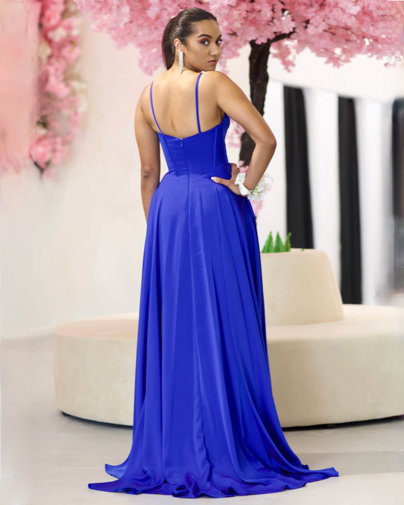 Marlia Corset Satin Gown - Royal Blue