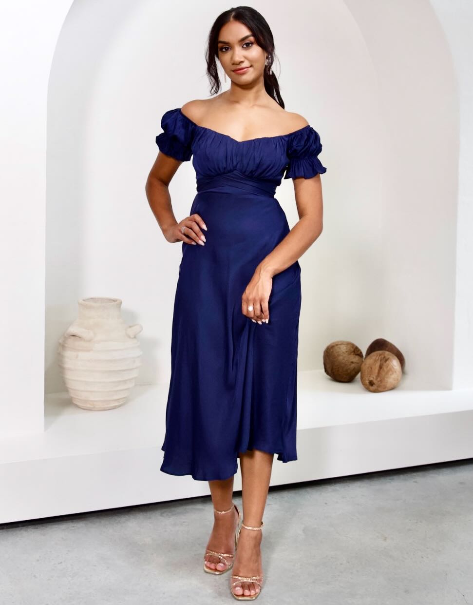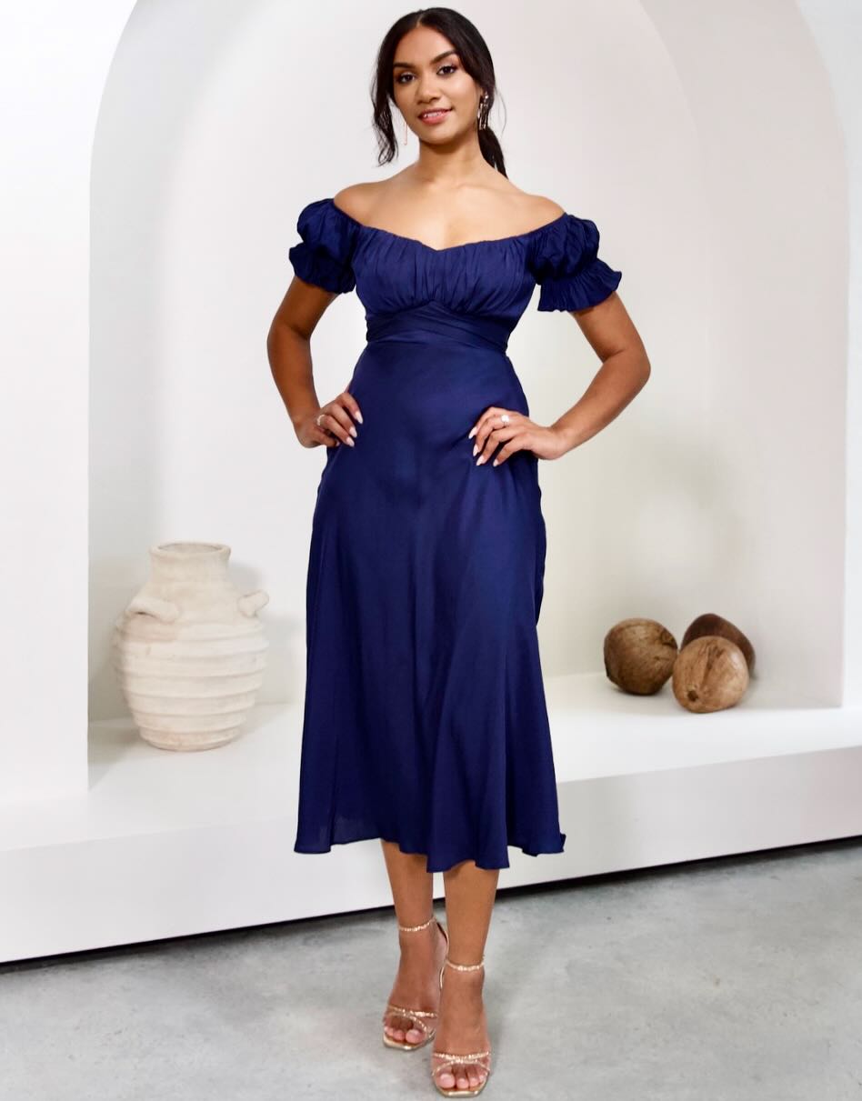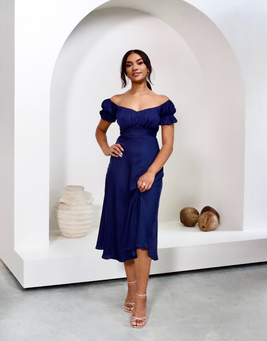 Feel fun and flirty this season in the Masie Midi Dress. The same style of Masie Mini but in a midi length. Featuring pretty puff short sleeves and a gorgeous ruched centre sweetheart neckline, this dress screams modern day cuteness with a seventies twist. Pair with a pair of sneakers or one of our Solana Billini Heels for the ultimate chic look. When the sun comes out and the weather heats up, nothing beats throwing on a cute little summer dress.