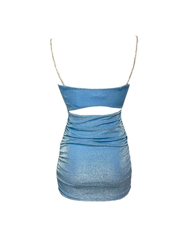 Get sexy, girls, and have all tongues wagging when you wear our Maya Glitter Mini Dress. An edgy take on the plain bodycon style with diamonte straps and a cut out panel at the back.