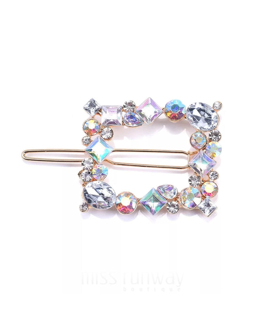 Playful and glamorous! Dress up any outfit with our Mia Rhinestone Hair Clip - Square.