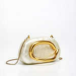 Elevate your ensemble with the Oceana Clutch in Gold, featuring a lustrous pearl-look finish complemented by refined metal trims and hardware. Designed with a secure click closure and a removable metal chain, this clutch offers versatile elegance for both day and evening occasions.