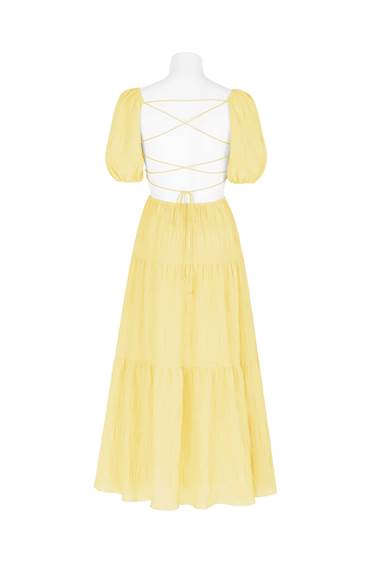 Our Olga Maxi Dress is perfect for this summer! Featuring a maxi length, short puff sleeves, lace up back and a cute cut out waist.