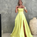 The new beautiful Paola Strapless Gown by Nicoletta features a modern ruching on the strapless bodice, A-line full skirts and a super sexy side split. Made of luxurious Mikado fabric.