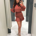 Be totally flirty and fun in the Piper Dress coming into cooler weather. Who says you have to have all skin on show to woo your date? The unique textured fabric and ultra flattering ruched body is complete with long sleeves.