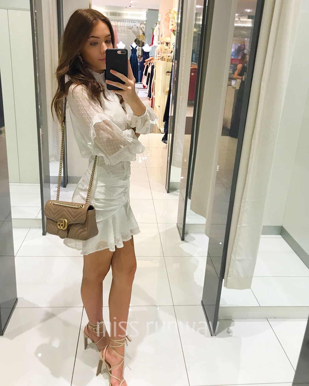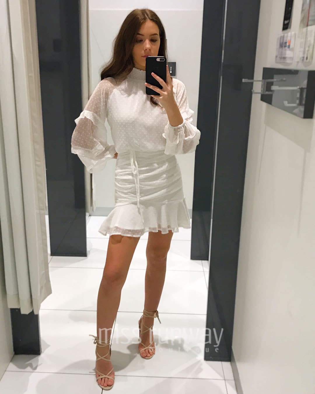 Be totally flirty and fun in the Piper Dress coming into cooler weather. Who says you have to have all skin on show to woo your date? The unique textured fabric and ultra flattering ruched body is complete with long sleeves.