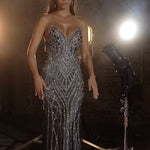 Make a grand entrance in this eye-catching Ramona Strapless Beaded Gown. Offering an alluring silhouette, it's guaranteed to turn heads at any occasion. With a sleek fitted silhouette that hugs the body perfectly and sophisticated strapless pointed neckline, this dress is sure to highlight your gorgeous figure. Complete with dazzling details like rhinestone embellishments and body contour design elements, you're sure to make a statement no matter where you go! Get ready for the night of your life with its sparkling layers of glitter tulle over a nude lining - perfect for the glam, sexy look you crave.