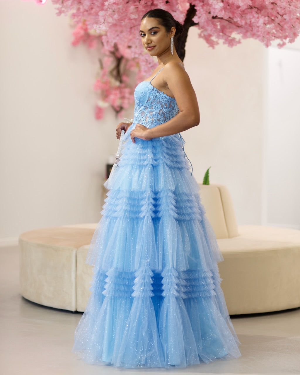 Rosamund Layered Tulle Gown - Dusty Blue