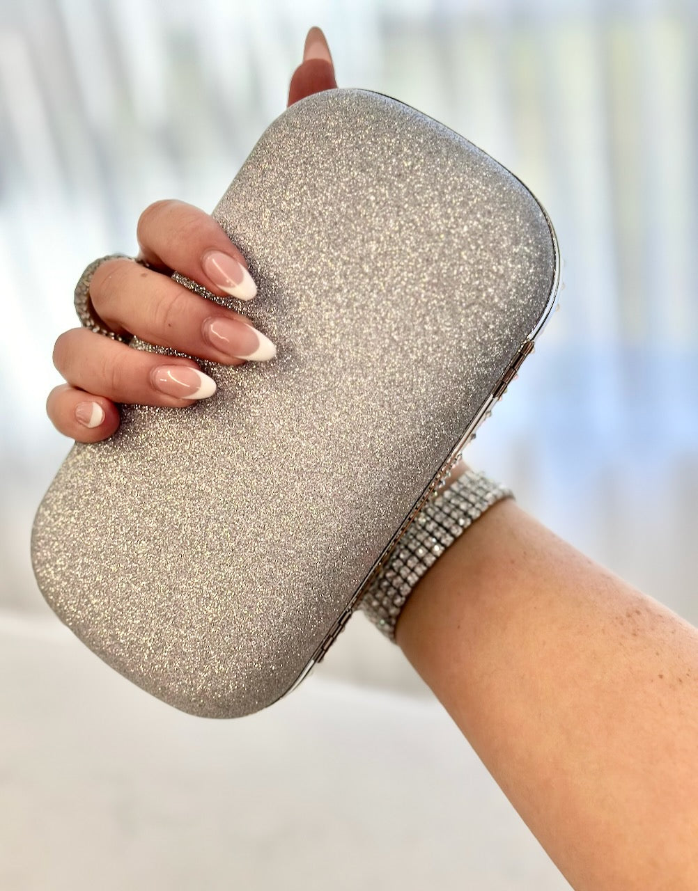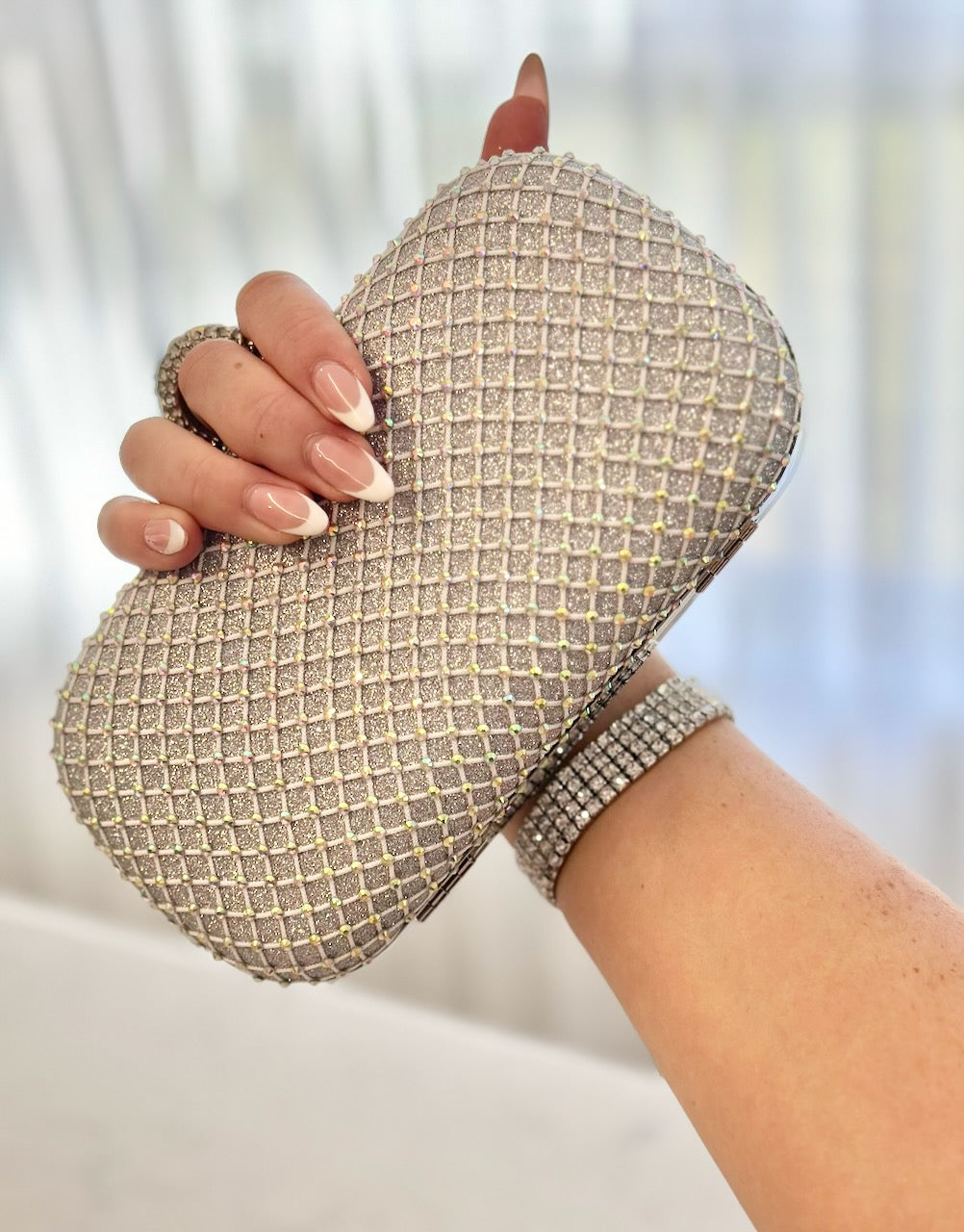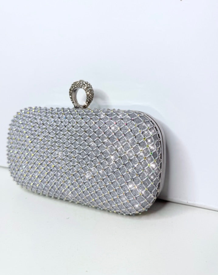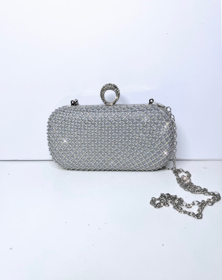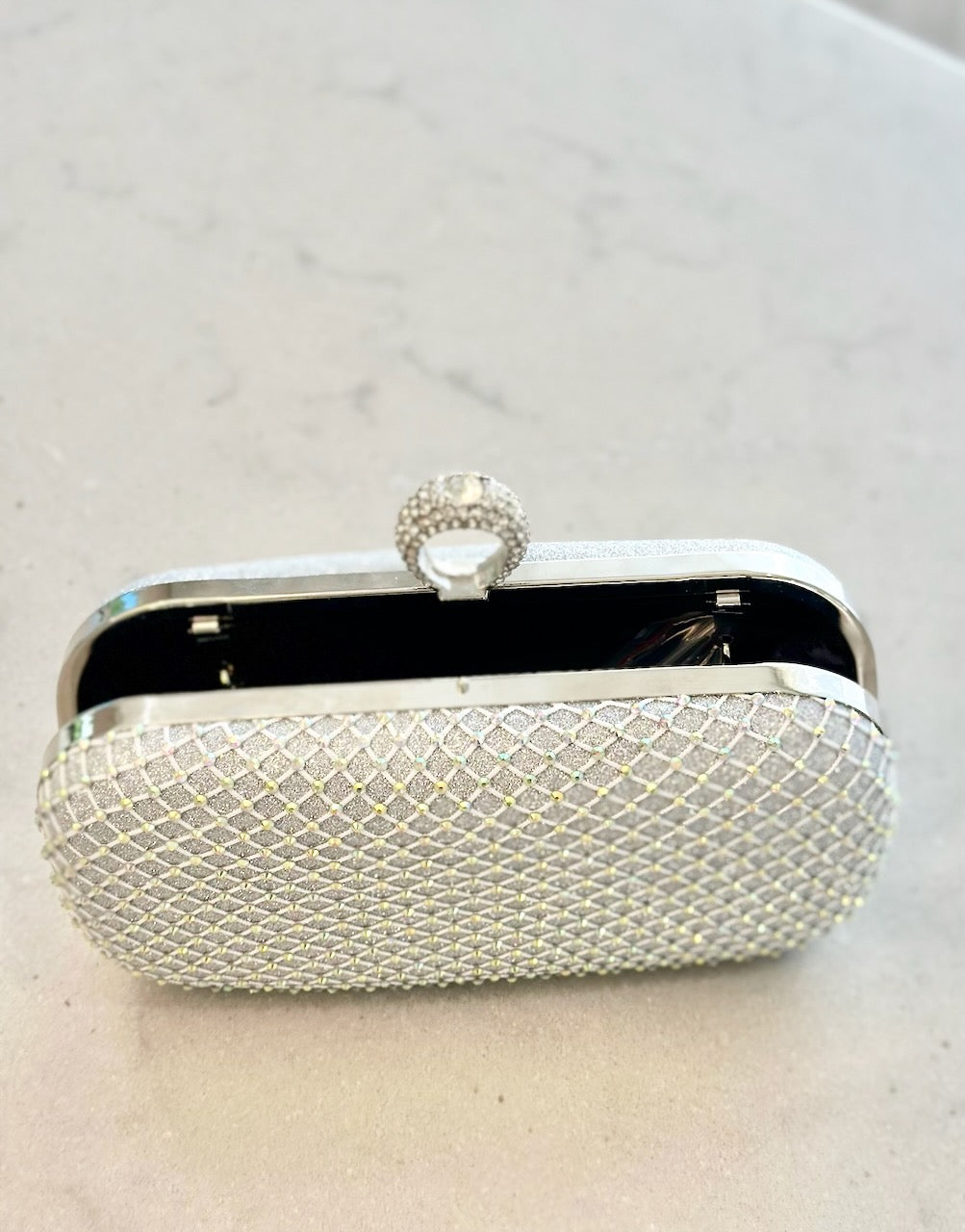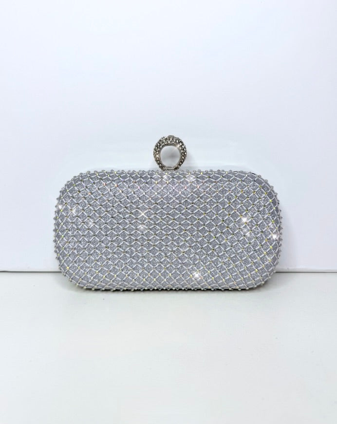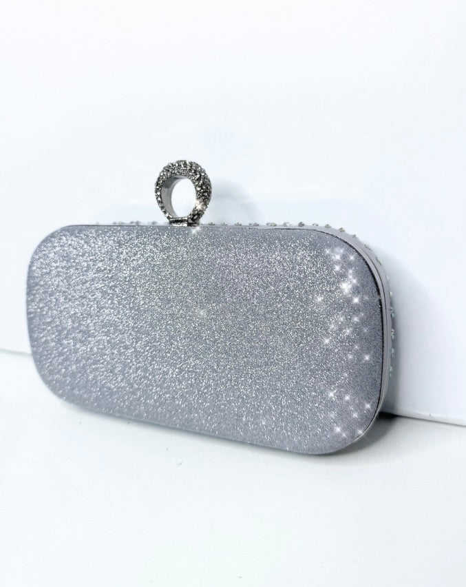 The Royal Nightfall Clutch features a gorgeous ring hold to finish any outfit perfectly. Crystals glisten in the night on this cute little bag!