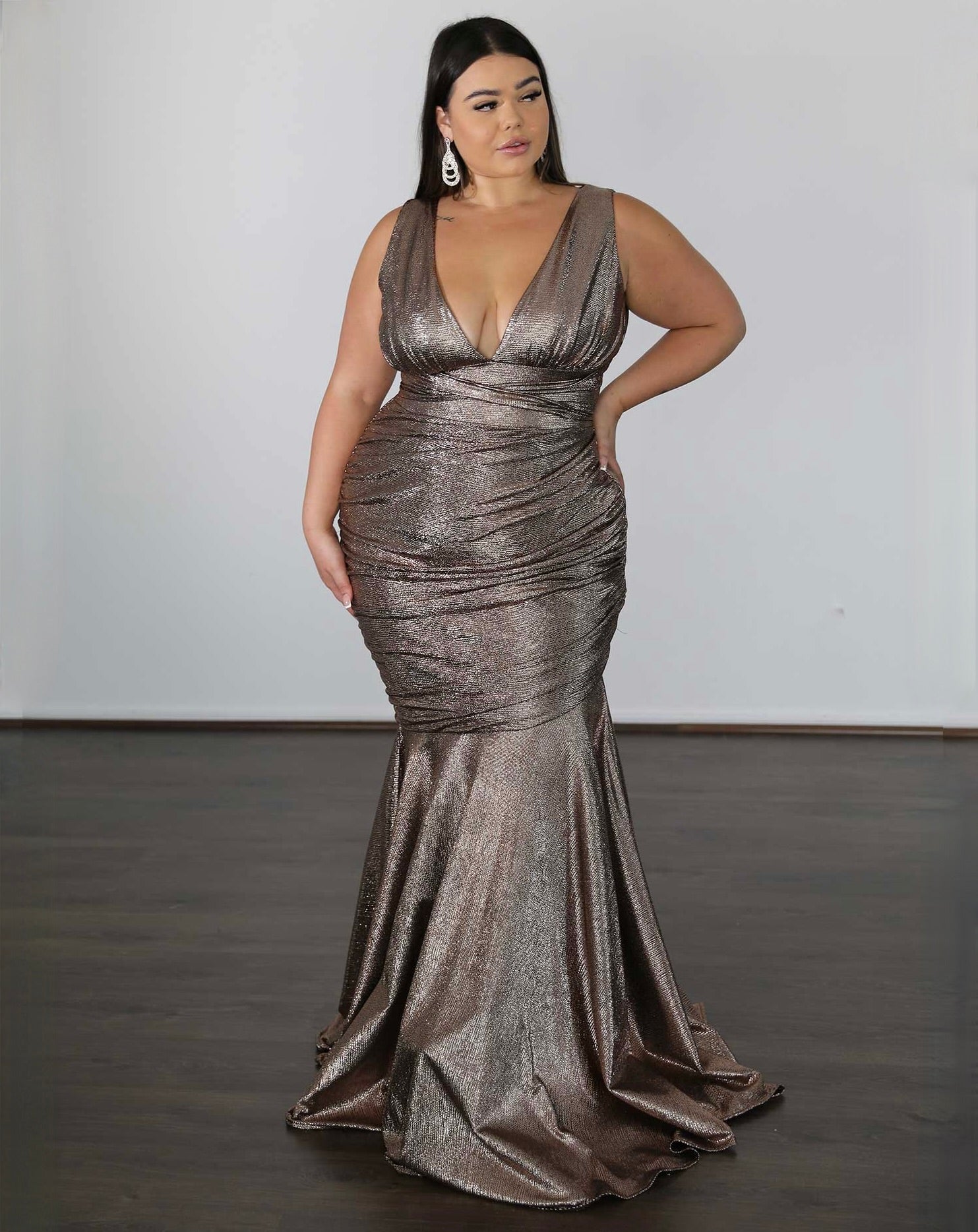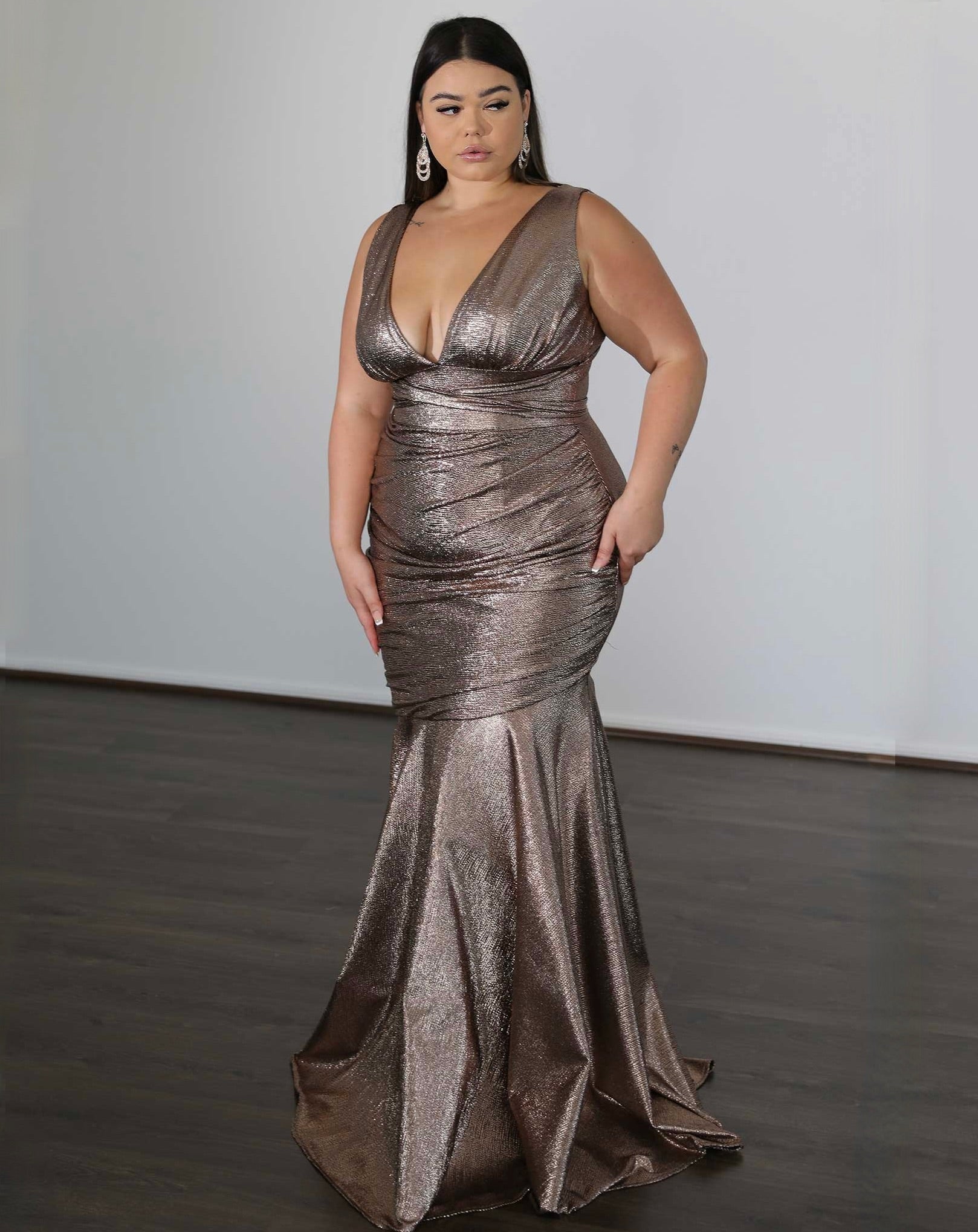 Lavishly designed for the confident and fearless, this is our Ryley Stretch Shimmer Dress. Featuring her V-style neckline with adjustable modifications, Ryley is a show-stopper and your perfect formal dress.