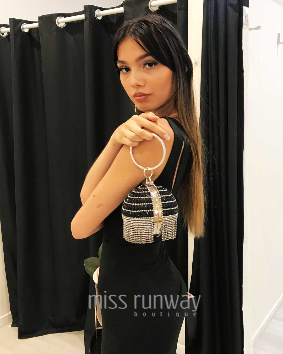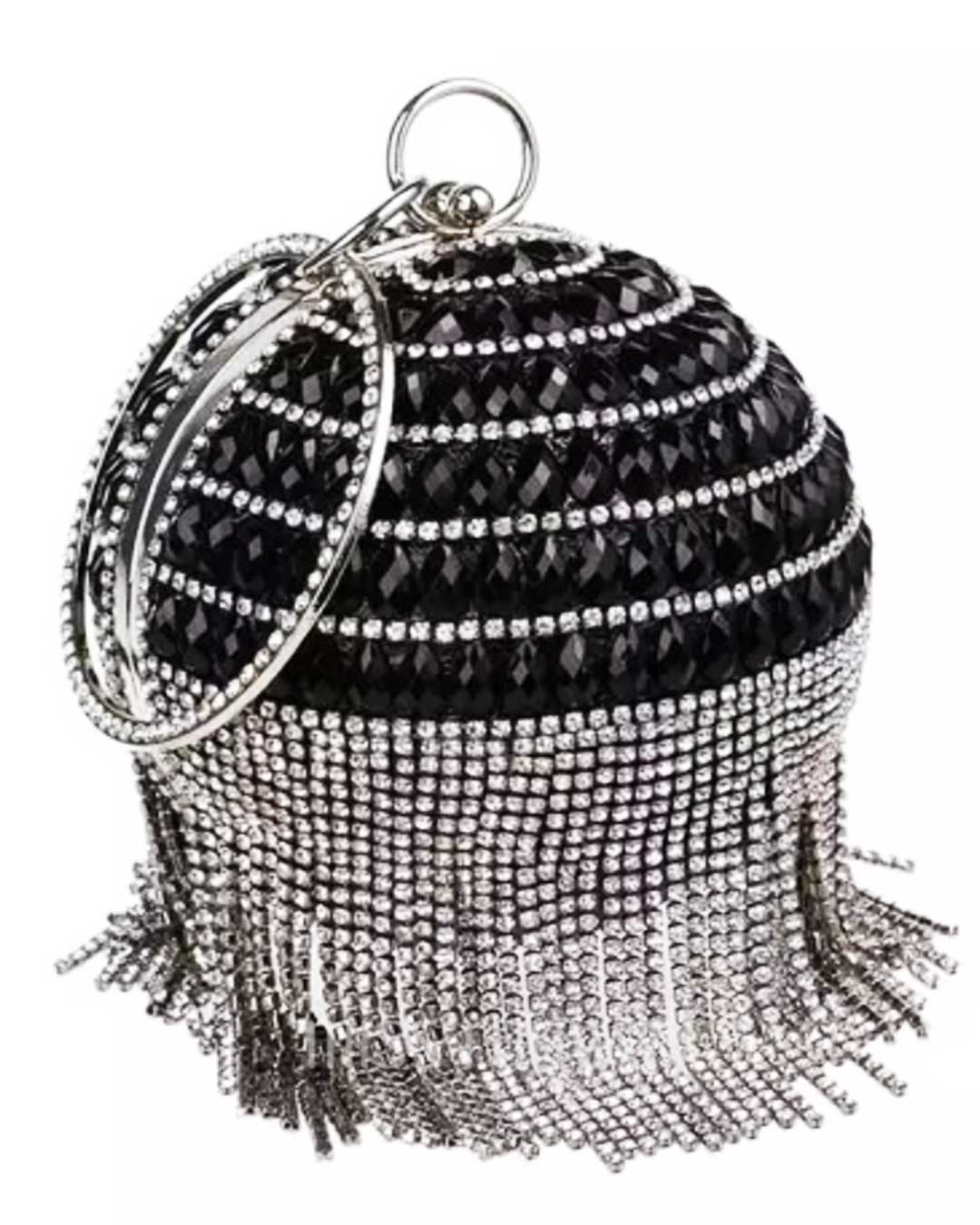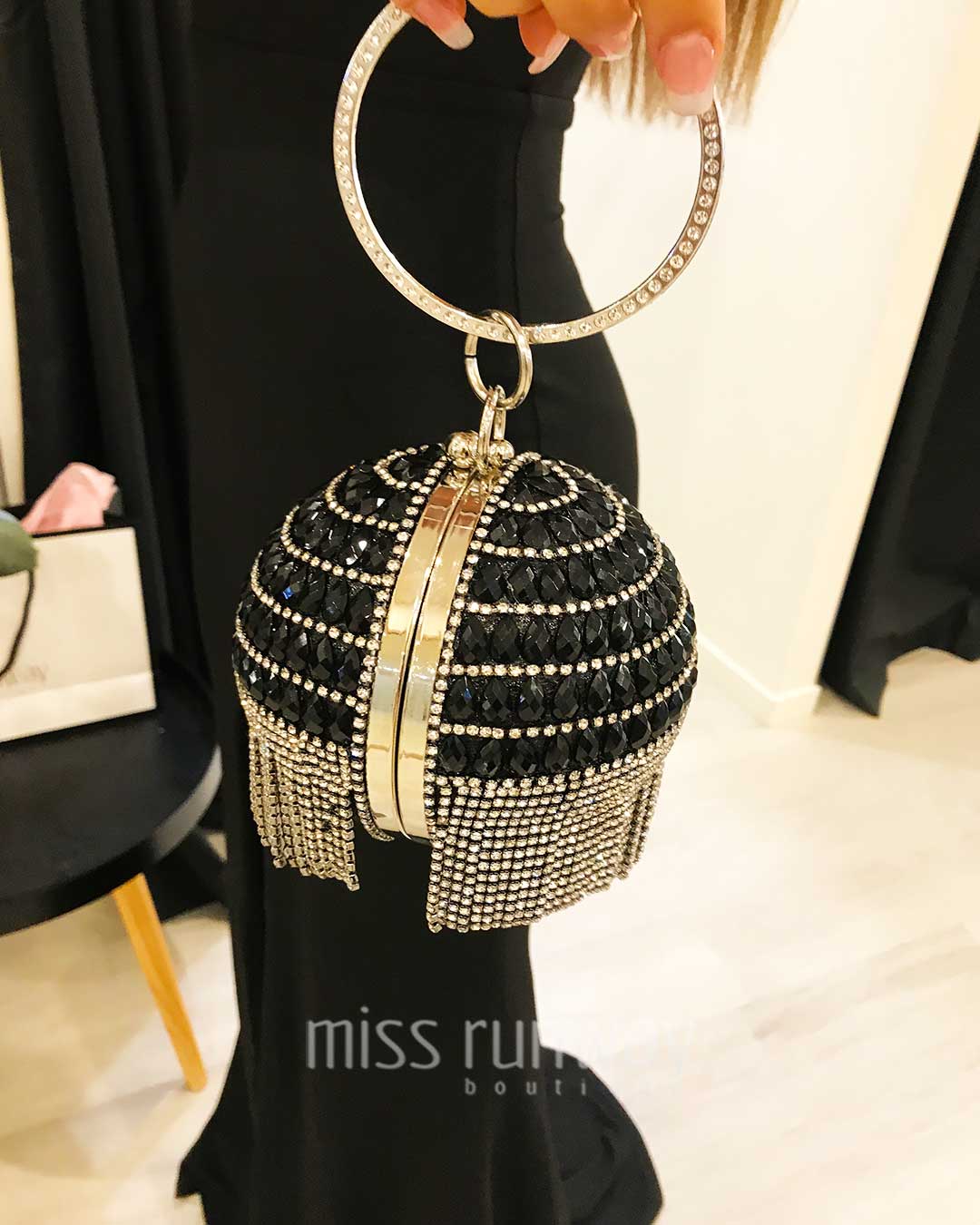 When a statement bag is needed to complete the look. You've never seen a clutch quite like the Skyla Circle Clutch Bag which features stunning diamonte jewels in a unique circle shape with wrist ring. Get that "wow, I love your bag" comment at your next event.