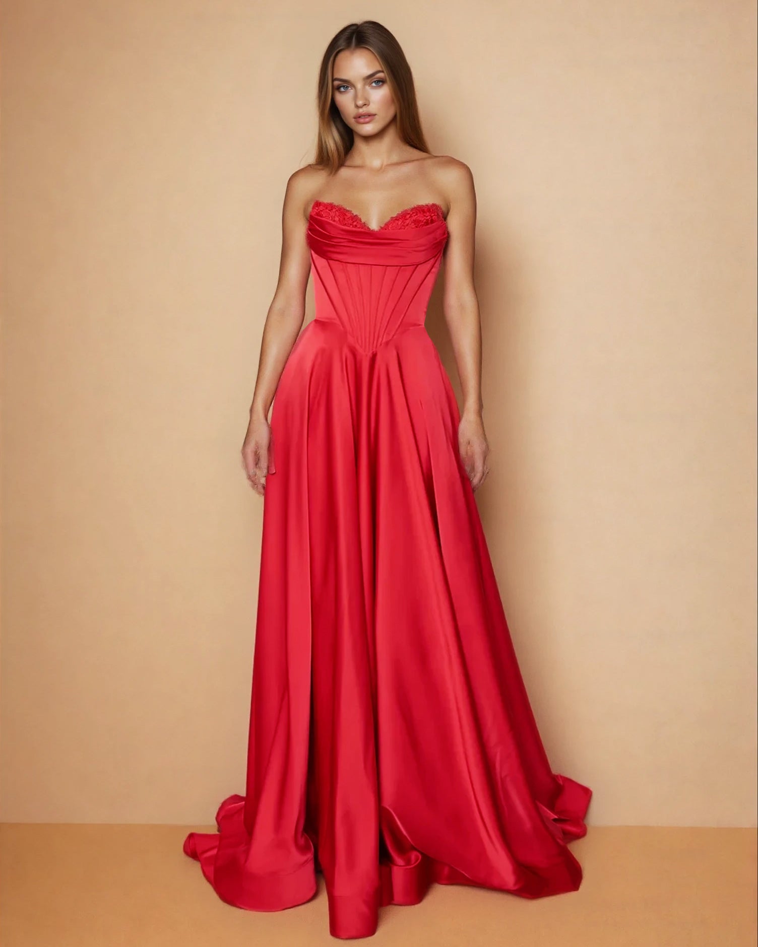 Sloane Satin Corset Gown - Red