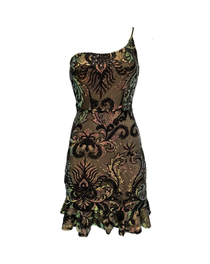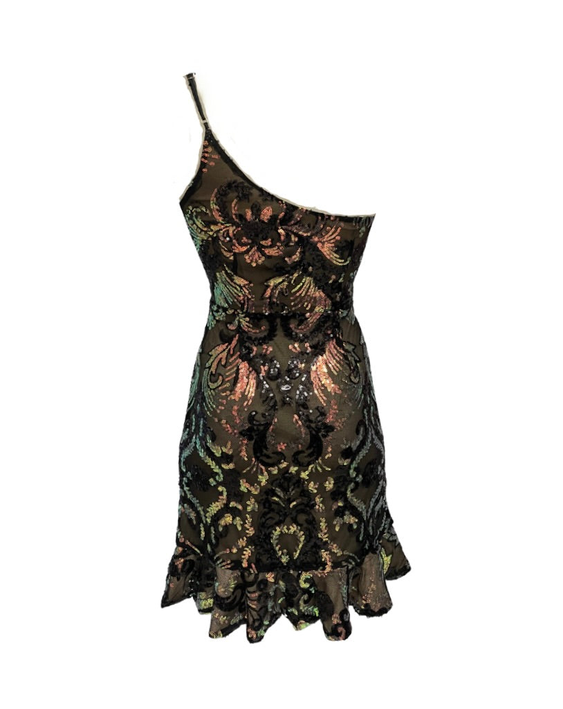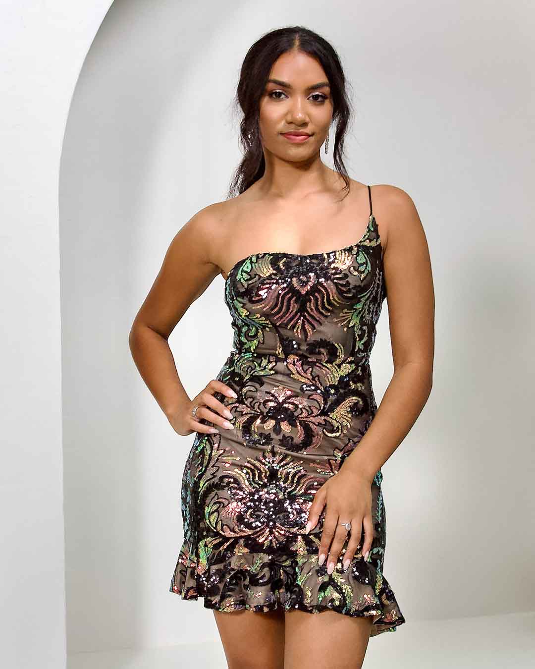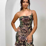 Turn heads walking into your next event wearing The Xanthe Sequin Dress in rose gold. This mini party dress is a show stopper with it's body-con style and cross strapped back. You'll be certain to sparkle all night long!