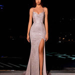 Our Zaliah Glitter Gown is elegant with a cheeky side of sexy and sparkle. Rock this floor length dress to have the most head turning, jaw dropping reaction at your formal or ball. Show off your leg with the split and keep everyone enchanted as you walk away with the lace up back.