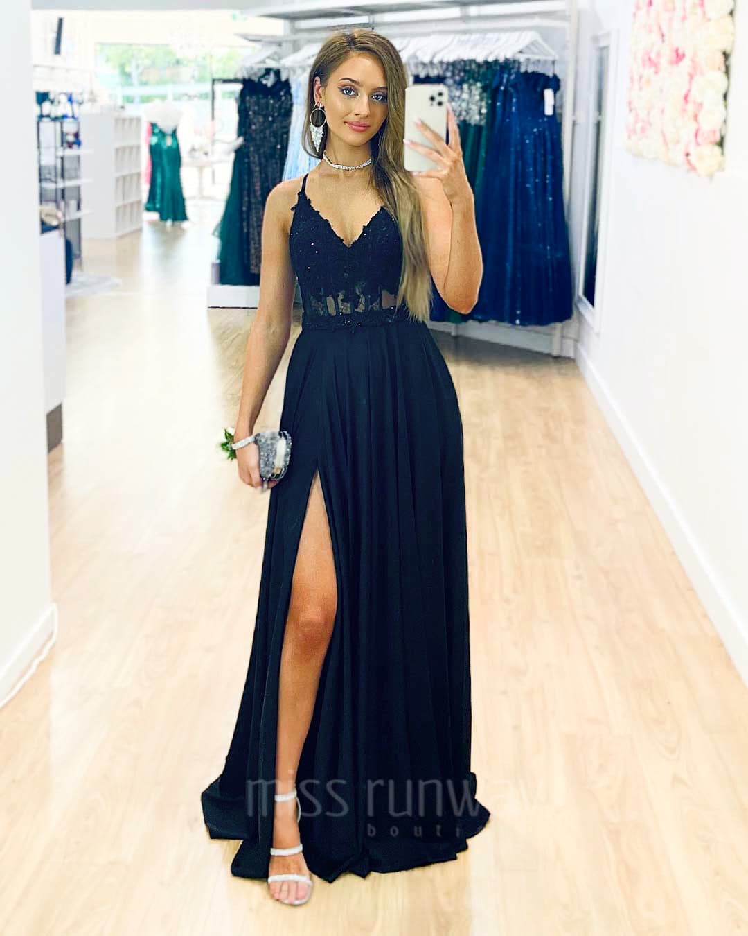 Fall in love with this stunning Zoe Gown. The must have corset style bodice features an absolutely beautiful neckline with lace and beaded detail. Enhance your womanly curves with the cinched in waist and flowing skirt with sexy side front slit. Prepare yourself to have all eyes on you! We're in love and so will you.